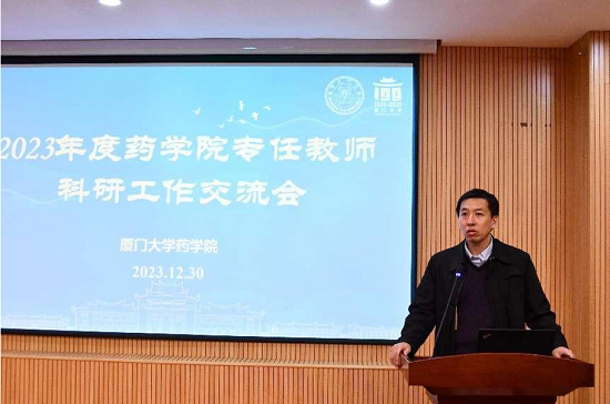 12月30日药学院2023年度专任教师科研工作交流会在学院426报告厅顺利召开,会议由陈海峰副院长主持。本次交流会面向药学院全体专任教师、博士后和工程技术人员,旨在加强学院内部科研工作交流、推动合作、促进学院整体发展,学院近50人参加了会议。
