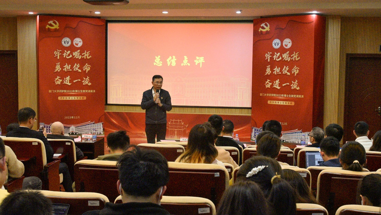 宋友良在点评中表示,博士生微党课迄今已经举办三届,成为学院重点建设、特色鲜明的党建品牌。本次微党课展演主题鲜明,大家把学习学校第十二次党代会精神的感悟和体会通过微党课的方式,结合自身实际,从不同角度进行了很好的展示。全体参与同学都作了精心准备,展演内容丰富、形式多样、情真意切,活动取得了很好的效果。希望全体研究生通过这一活动,更加深入地学习领会习近平新时代中国特色社会主义思想,更加全面地理解掌握学校第十二次党代会精神,进一步坚定当代青年的责任担当,自觉传承家国情怀、厦大校风、学院文化,在思想、行动、创新上更好地起到引领示范作用,将青春奋斗融入中华民族伟大复兴的宏伟事业,让青春在新时代广阔天地中热情绽放。