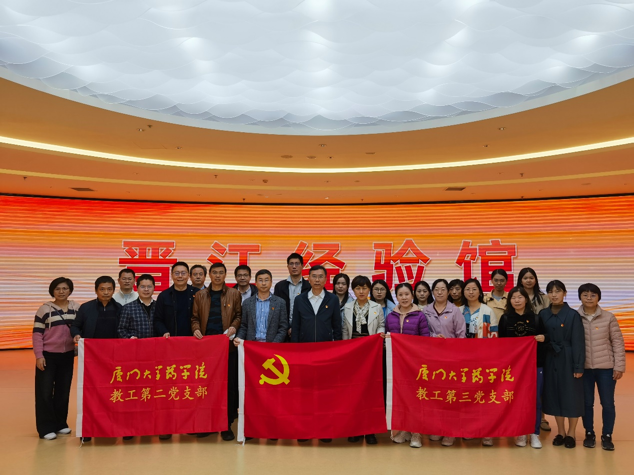 为巩固拓展学习贯彻习近平新时代中国特色社会主义思想主题教育成果,2024年1月3日,药学院教工第二党支部和教工第三党支部联合前往晋江开展实践教学活动,现场学习“晋江经验”和传承革命精神。学院党委书记宋友良,党委副书记杜超、黄旻敏,教工第二党支部、教工第三党支部全体党员和入党积极分子参加本次学习。
