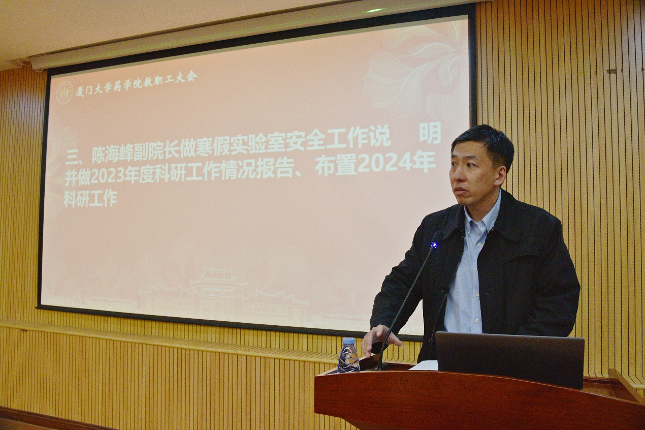 陈海峰强调寒假实验室安全事宜,报告学院2023年度科研工作情况,并布置2024年科研工作。他对学院实验室专员队伍的工作表示充分肯定和感谢,要求各实验室在假期做好安全隐患排查,建立安全台账,加强实验室安全管理。他表示,学院2023年在科研奖项、横向到账经费、高水平论文发表等方面取得了新的突破,希望教师近期重点做好国家自然科学基金申报准备,积极参与指南建议征集,聚焦主业、多渠道广泛争取科研经费。学院将大力支持人才培育工作,进一步提升整体科研实力,争取重大项目和平台。