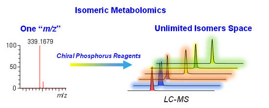 为了高通量分析含氨基代谢物及其异构体,开发MS Isomerism软件,结合手性磷试剂和LC-MS/MS技术,发掘并鉴定了不同种类肝细胞的含氨基代谢物和同分异构体,并相对定量肝细胞和正常细胞中的含氨基代谢物。在5种肝癌细胞和1种正常肝细胞中检测到854个潜在的含氨基代谢物和154组含氨基代谢物异构体;肝癌细胞相对正常肝细胞有37个含氨基差异代谢物,包括氨基酸、多胺和多肽等。此外,发现约有24%的特征峰不能与数据库匹配,说明存在许多未知的含氨基代谢物。这一研究中,首次确定S-乙酰谷胱甘肽是肝细胞的内源性代谢物。这项研究为复杂生物中含氨基代谢物及其同分异构体提供了一种有效的方法和策略。手性磷试剂在同分异构体代谢组学分析中的可行性,可以加深对生命镜像化学的认识,进一步推动疾病诊断新标志物的发现。