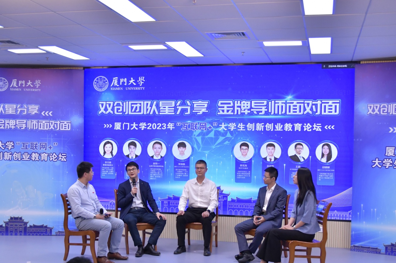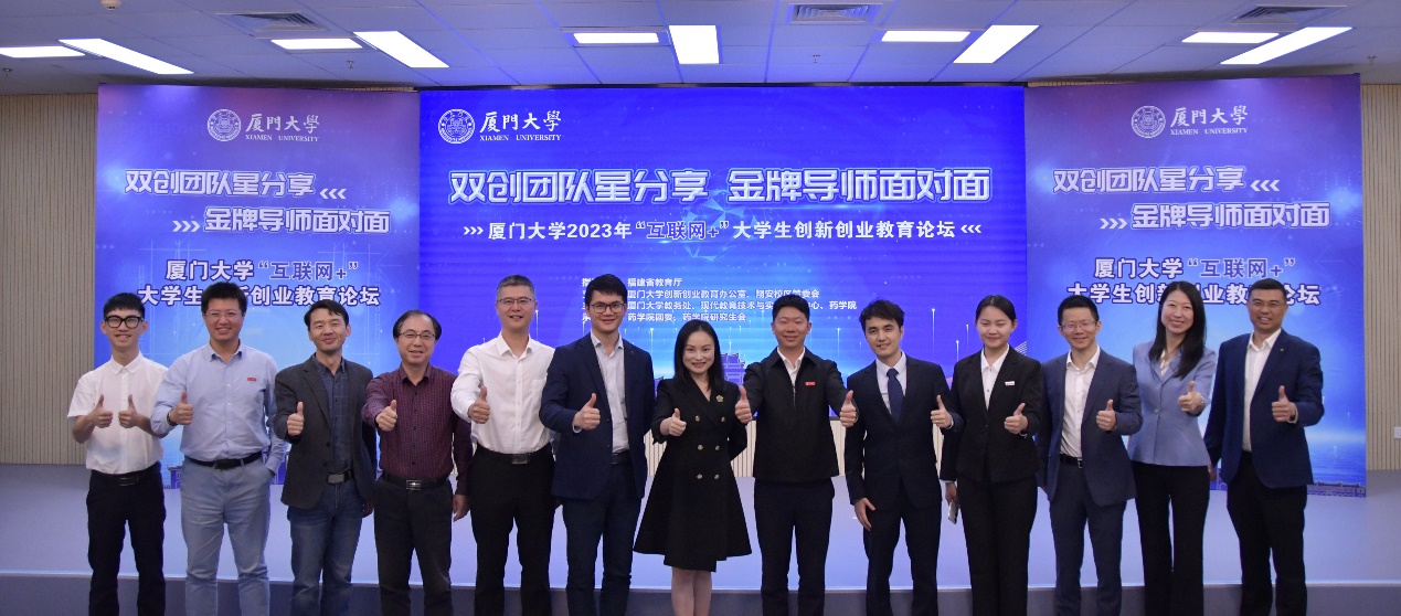 为深入学习贯彻习近平新时代中国特色社会主义思想和党的二十大精神,全面提高人才自主培养质量,着力造就拔尖创新人才,4月26日晚,以“双创团队星分享,金牌导师面对面”为主题,厦门大学2023年“互联网+”大学生创新创业教育论坛于翔安校区新工科研发大楼218报告厅举行,在思明校区、漳州校区同时设置了分会场。活动由福建省教育厅指导,翔安校区管委会、教务处、现代教育技术与实践训练中心、药学院相关负责人,往届大赛优秀团队代表、指导老师代表以及各单位师生代表参加本次活动。