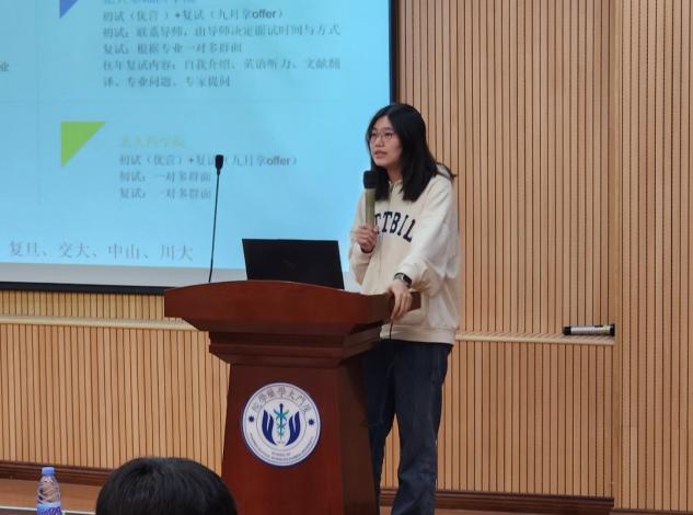活动中,三位同学分别就目标选择、推免流程、备考方法等方面进行详细介绍,强调要全面收集相关信息,积极调整备考心态,充分利用校友资源,并针对大家提出的问题给出了具体的意见和建议。活动现场氛围活跃,参与学生纷纷表示受益良多。