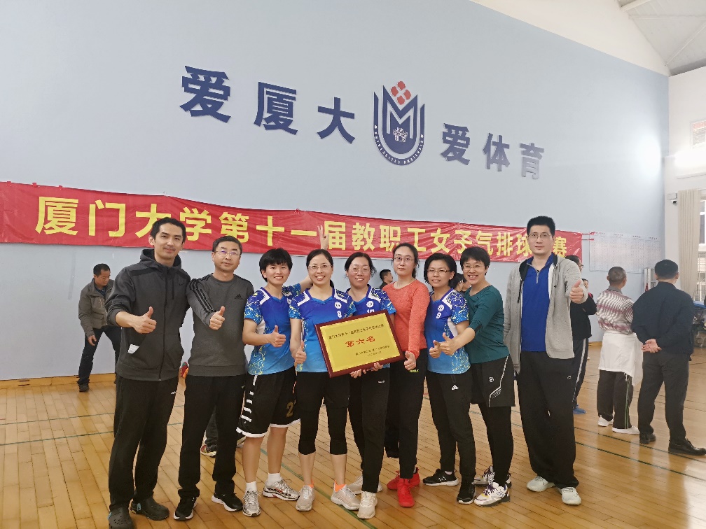 3月18—19日,厦门大学第十一届教职工女子气排球比赛在思明校区风雨球馆隆重举办。本次比赛汇聚了全校18个部门工会百余名教职工运动员参赛,共进行了40多场激烈的比赛。我院教职工女子气排球队奋勇拼搏、不惧挑战,最终斩获佳绩,勇夺全校第六。学院党委副书记黄旻敏,副院长、工会主席朱铉和众多学院老师到场为球队加油助威,极大地鼓舞了士气。