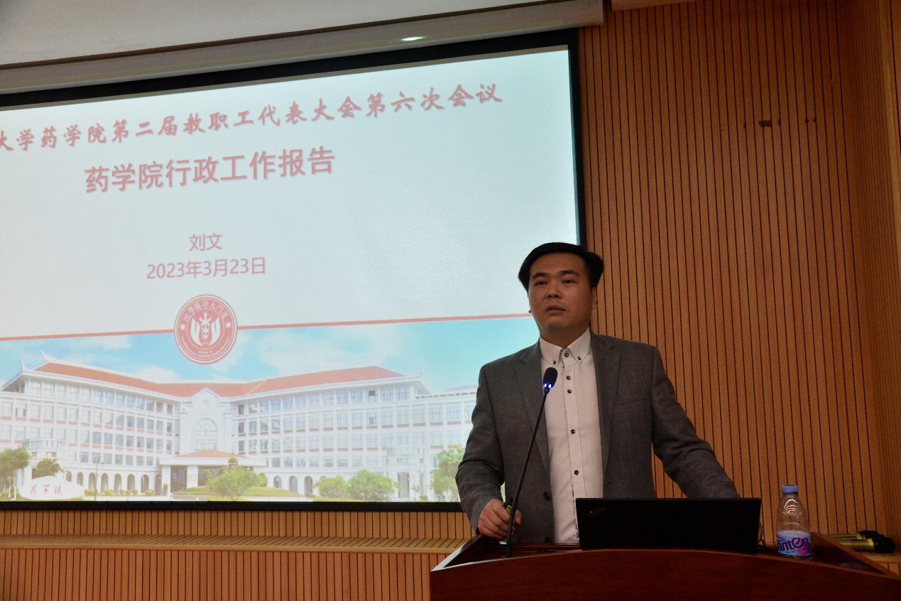 3月23日下午,药学院召开第二届教职工代表大会第六次会议及药学院工会会员大会。会议听取并审议了《药学院党委工作报告》《药学院行政工作报告》《药学院工会工作报告》《药学院财务工作报告》,进行药学院工会换届选举工作。学院党委书记宋友良,副院长(主持工作)刘文,院党委副书记杜超、黄旻敏,副院长陈海峰、吴云龙,副院长兼工会主席朱铉及全体教职工参加会议。会议由黄旻敏主持。