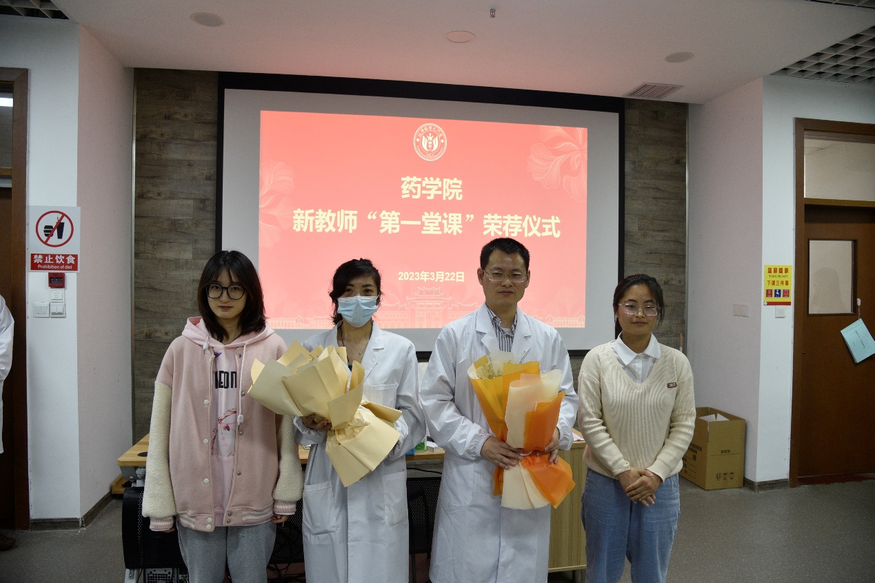 宋友良强调,为新教师举行“第一堂课”荣荐仪式,体现了学院对教师队伍建设和人才培养工作的高度重视。他对两位老师的育人工作提出几点希望。一是始终牢记立德树人,做一名有理想信念、有道德情操、有扎实学识、有仁爱之心的好老师,坚持为党育人、为国育才,自觉弘扬优良师德师风,以自身言行引导学生树立正确的世界观、人生观、价值观。二是矢志培育一流人才,心怀国之大者,提升教学能力,推动教学改革,打造更多的“金课”,更好培养“创新型、国际化、应用型”的药学特色人才。三是积极开展师生互动,在课堂内外主动指导学生、关心学生,既指导学业科研,又关心思想生活,做到教学相长,成为学生的良师益友。