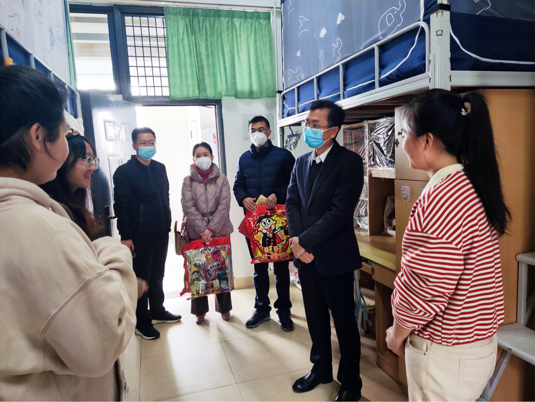 金虎辞旧岁,瑞兔送福来。1月17日上午,学院党委书记宋友良,党委副书记杜超、黄旻敏,团委书记陈洪一同来到学生宿舍和实验室,走访慰问假期留校学生,为同学们送上新春祝福和慰问礼包。