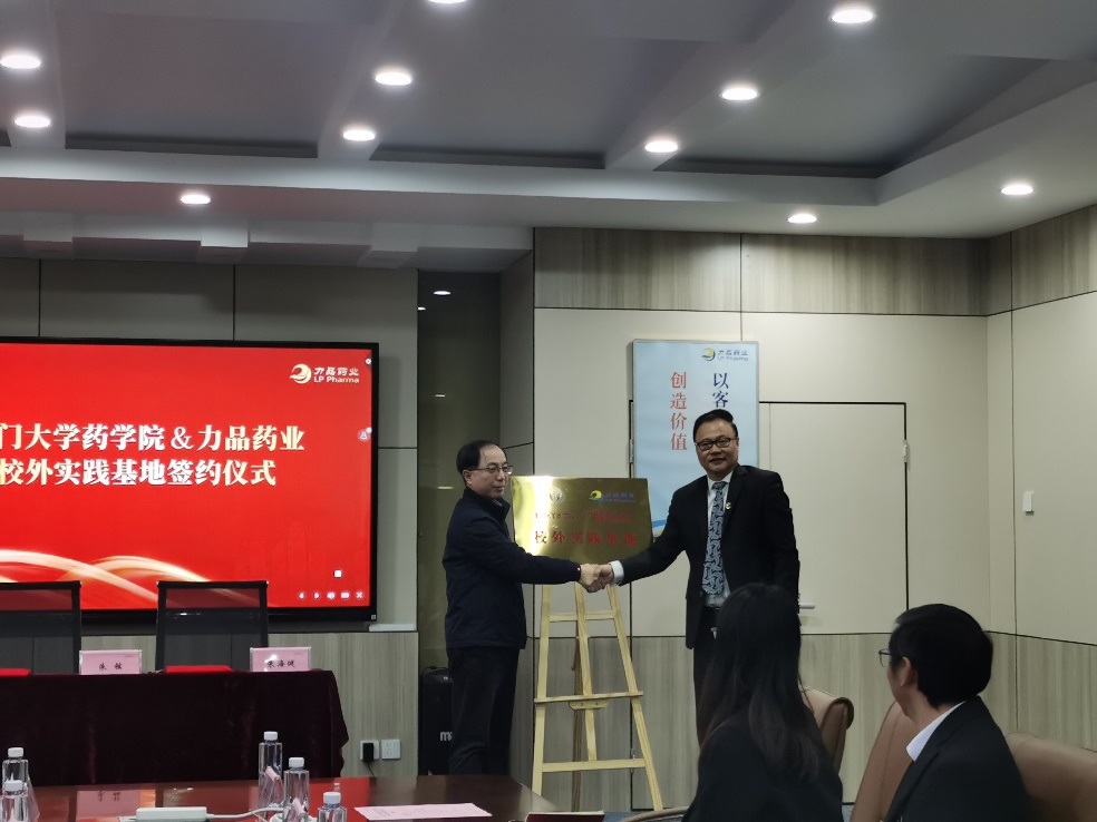 随后,朱铉、朱海健分别代表学院和公司共同签订了校外实践基地协议书,并为“厦门大学药学院-力品药业校外实践基地”揭牌。会上,颁发了朱海健博士为厦门大学药学院药学专业研究生校外导师的聘书。
