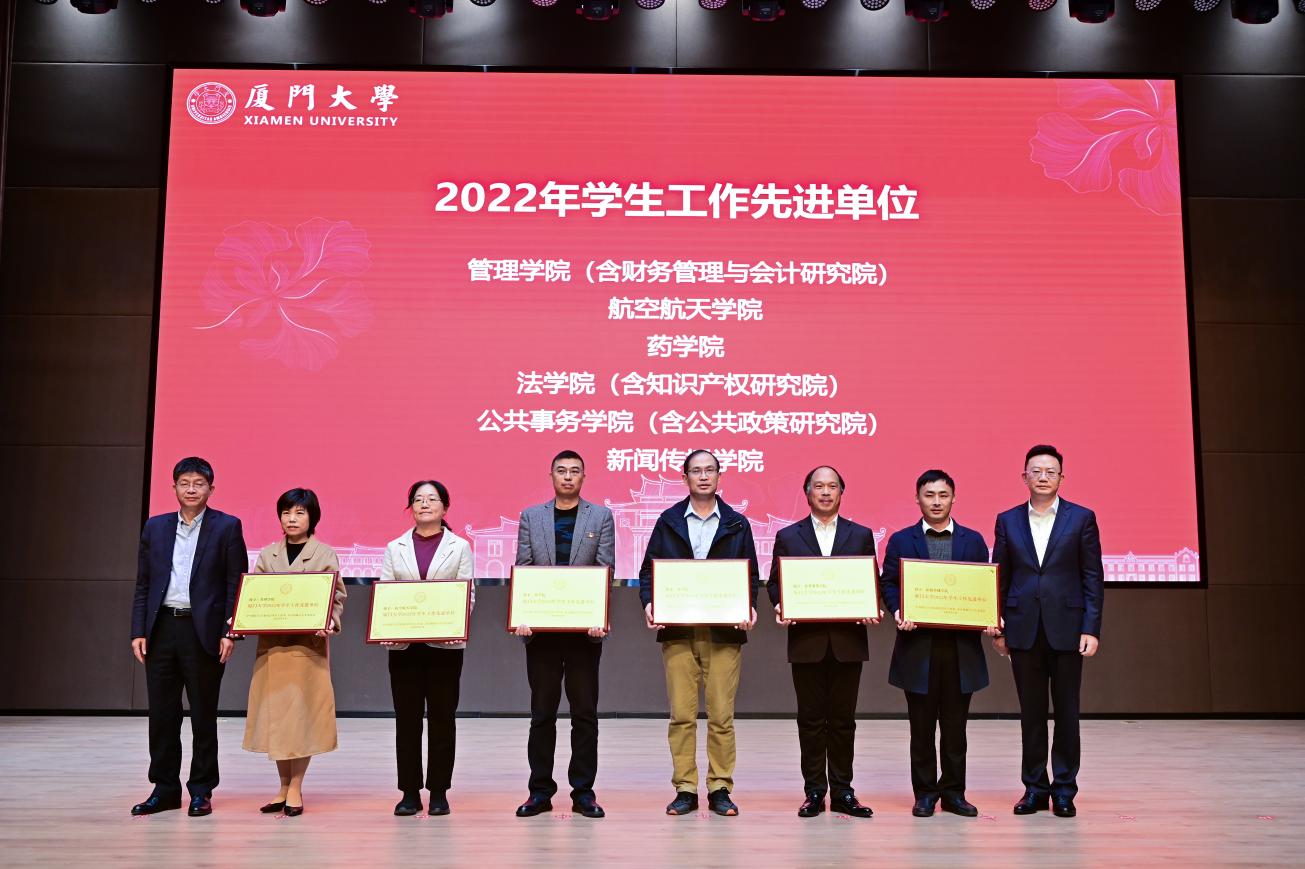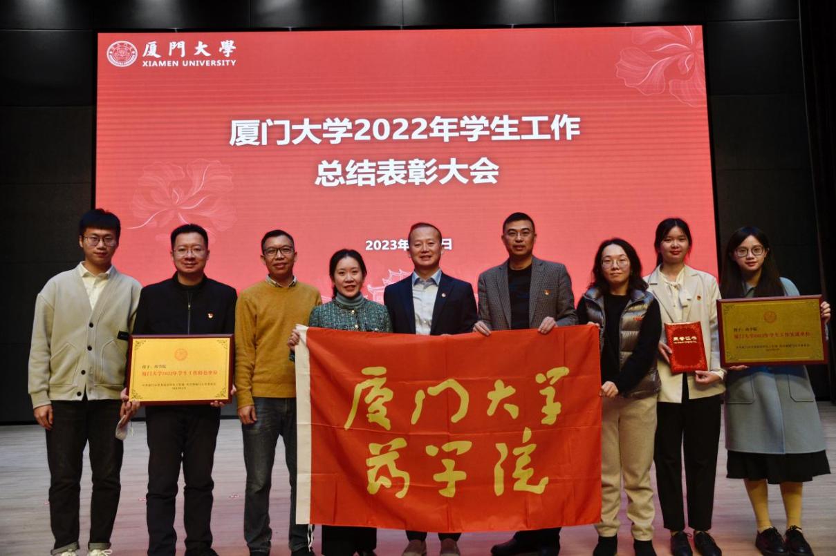 表彰大会上,药学院以总分全校第三荣获“厦门大学2022年学生工作先进单位”称号,学院“铸牢中华民族共同体意识教育工作”获评“厦门大学2022年学生工作特色单位”,获奖数居全校并列第四位。