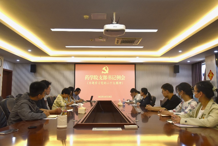 10月28日下午,药学院召开支部书记例会,集体学习党的二十大精神。全院各师生党支部书记参会,大家结合学习工作实际,谈认识、讲体会,讨论支部深入学习贯彻党的二十大精神的思路及举措。院党委副书记、教工第一党支部书记黄旻敏主持会议。