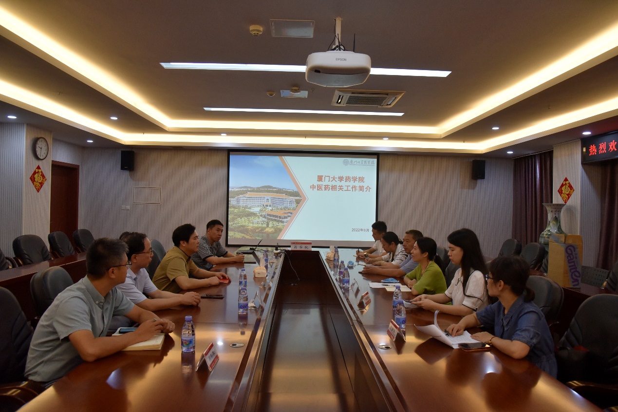 刘文对吴康妮一行的到访表示热烈欢迎,他表示,双方在中医药领域的创新发展方面有着广阔的合作空间,希望以此为契机,进一步加强沟通对接,开展深入的交流合作。陈海峰介绍了我院在中医药现代化研发方面的科研进展和已有成果,他表示,学院坚持开展我国特色药用资源的自主创新研发,希望以一流的原创成果推进中医药现代化开发工作,服务地方医药产业和社会经济的发展。吴康妮在发言中表示,厦大药学院在创新药物研发方面有一支强有力的高水平人才队伍,已取得了能够参与国际竞争的优秀成果,希望今后双方通力合作,发挥高校领军作用,共同促进中医药传承创新发展。