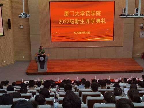 9月29日下午,药学院在翔安校区学武楼B101报告厅举行2022级新生开学典礼。学院党委书记宋友良,副院长(主持工作)刘文,院党委副书记杜超、黄旻敏,副院长朱铉、陈海峰,新生班主任、教师代表,学院辅导员、党务秘书、教学秘书、2022级全体新生等参加活动。典礼由黄旻敏主持。