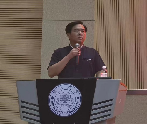 刘文教授首先致辞,对新加入药学院大家庭的全体同学表示欢迎和祝贺。他向全体新生提出四点期望:做对社会有责任有担当的人,坚定爱国主义理念信念,肩负使命、砥砺前行,努力为我国的健康事业做出新的贡献;追求专业上的成功,继续努力拼搏、勇于突破自我;提高自身各方面素质,特别是要学会与人相处,从单一型人才成长为智商、情商全方面发展的综合型人才;保持健康的身体与愉悦的心情,强健体魄,全面成长。最后,他殷切祝愿同学们在厦门大学药学院成长为有理想、敢担当、能吃苦、肯奋斗的新时代好青年。