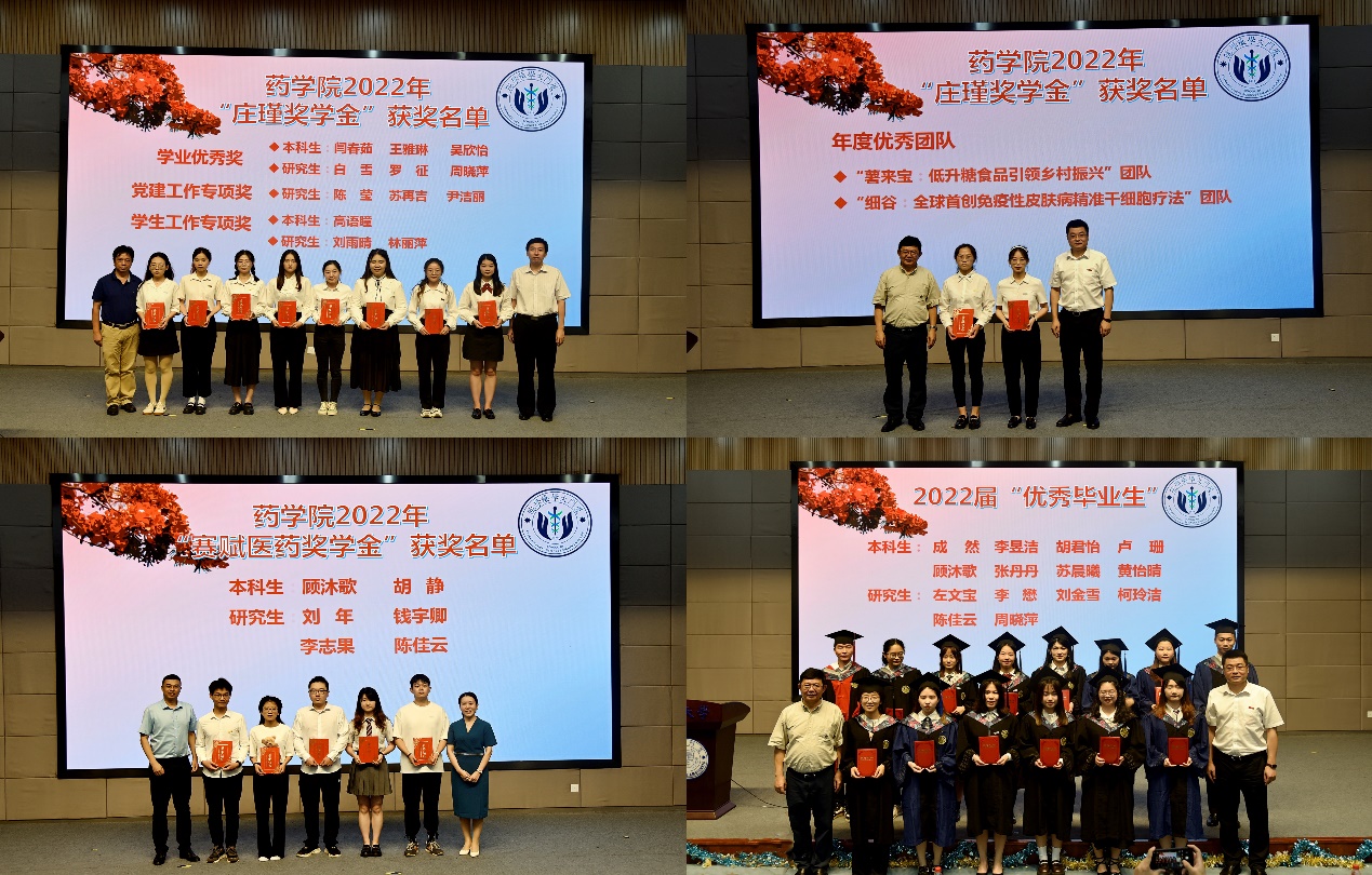 副院长吴振教授宣读“庄瑾奖学金”和“赛赋医药奖学金”表彰决定,学院领导为获奖者、优秀毕业生颁发荣誉证书。