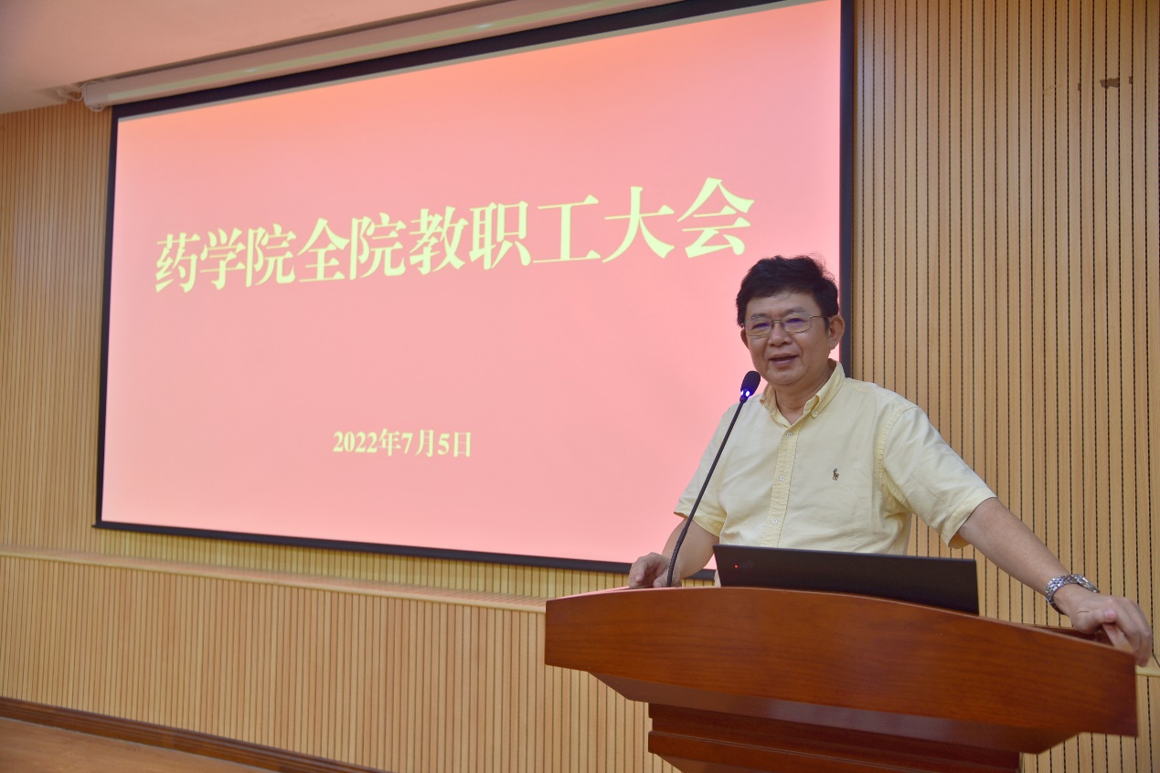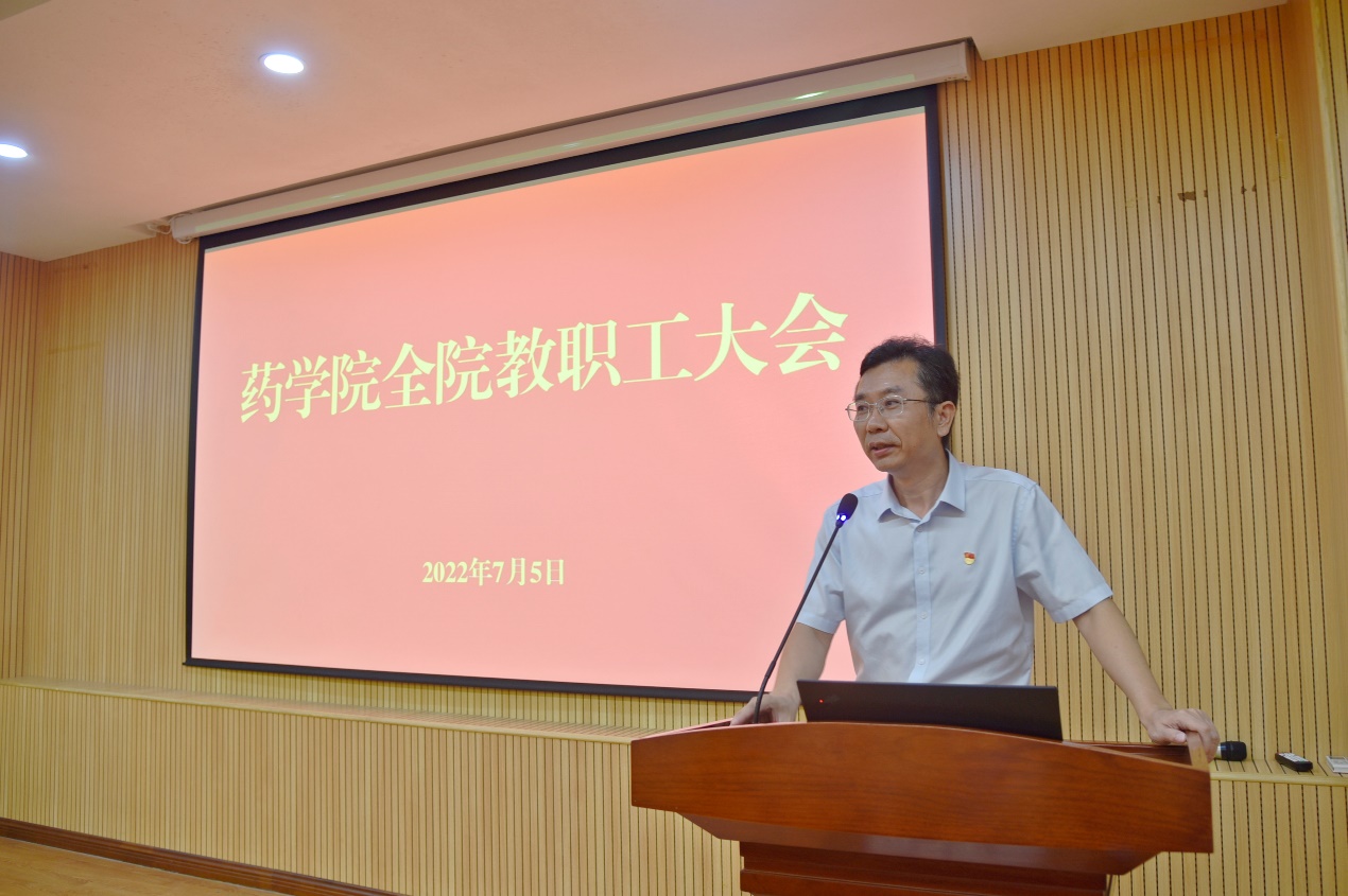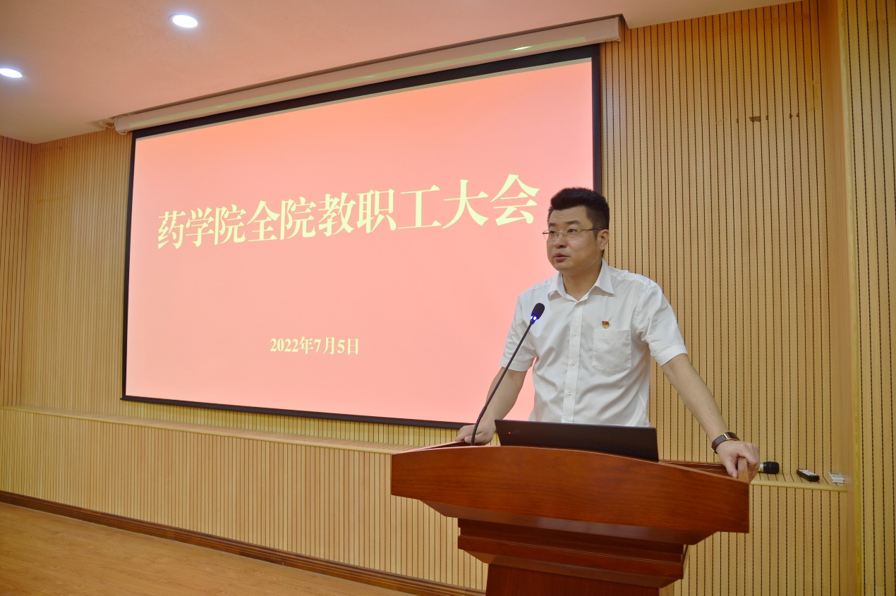 7月5日上午,药学院干部任免宣布大会在庄瑾楼426报告厅召开。校党委常务副书记林东伟,校党委常委、组织部部长、统战部部长孙理,药学院党政领导班子、全体教职工参加会议。会议由孙理主持。