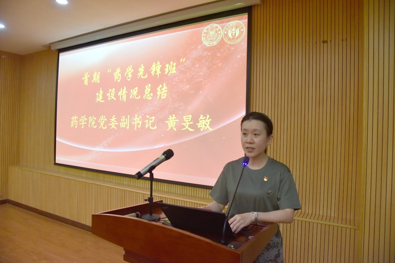 黄旻敏总结了首期“药学先锋班”的建设情况。先锋班创办一年多来,全体学员依托这一载体,强化理论学习、坚定理想信念,创新学习方式、提升学习实效,加强创新实践、争做药学先锋,项目建设成效显著。黄旻敏代表学院党委向大力支持和帮助先锋班建设的领导和老师表示感谢,向圆满完成学习任务的首期学员表示祝贺,希望大家牢记所学所悟,保持良好精神风貌,继续当好标杆表率。