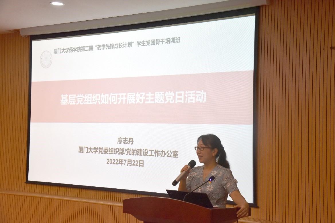仪式结束后,廖志丹为同学们作了题为《基层党组织如何开展好主题党日活动》的专题讲座。她通过对学校各单位优秀党日活动案例的深度分析,从“高、实、变、效”四个关键词出发,围绕主题选择、落实开展到总结宣传等各环节对如何开展好主题党日活动作了详细解读,为全体学员上了一堂生动的党课。