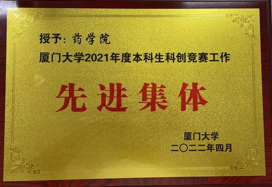 会上,学生工作处李峰处长宣读了《关于表彰第六届厦门大学本科生创新创业年会优秀科创竞赛等项目的决定》。药学院获得多项表彰:药学院获评校“2021年度本科生科创竞赛工作先进集体”;由吴振教授、陈全成副教授、吴彩胜副教授分别指导的3个大创项目获评校“优秀大学生创新创业训练计划项目”;由曾子晏教授级高工和吴彩胜副教授分别指导的中国国际“互联网+”大学生创新创业大赛银奖“团队——“细谷”和“薯来宝”,双双获得校“2021年度德贞社会课堂基金学生学业竞赛奖”;院党委副书记杜超、吴彩胜副教授获评校“2021年度德贞社会课堂基金优秀指导教师奖”;邹燕红获评校“2021年度本科生科创竞赛工作先进个人”。