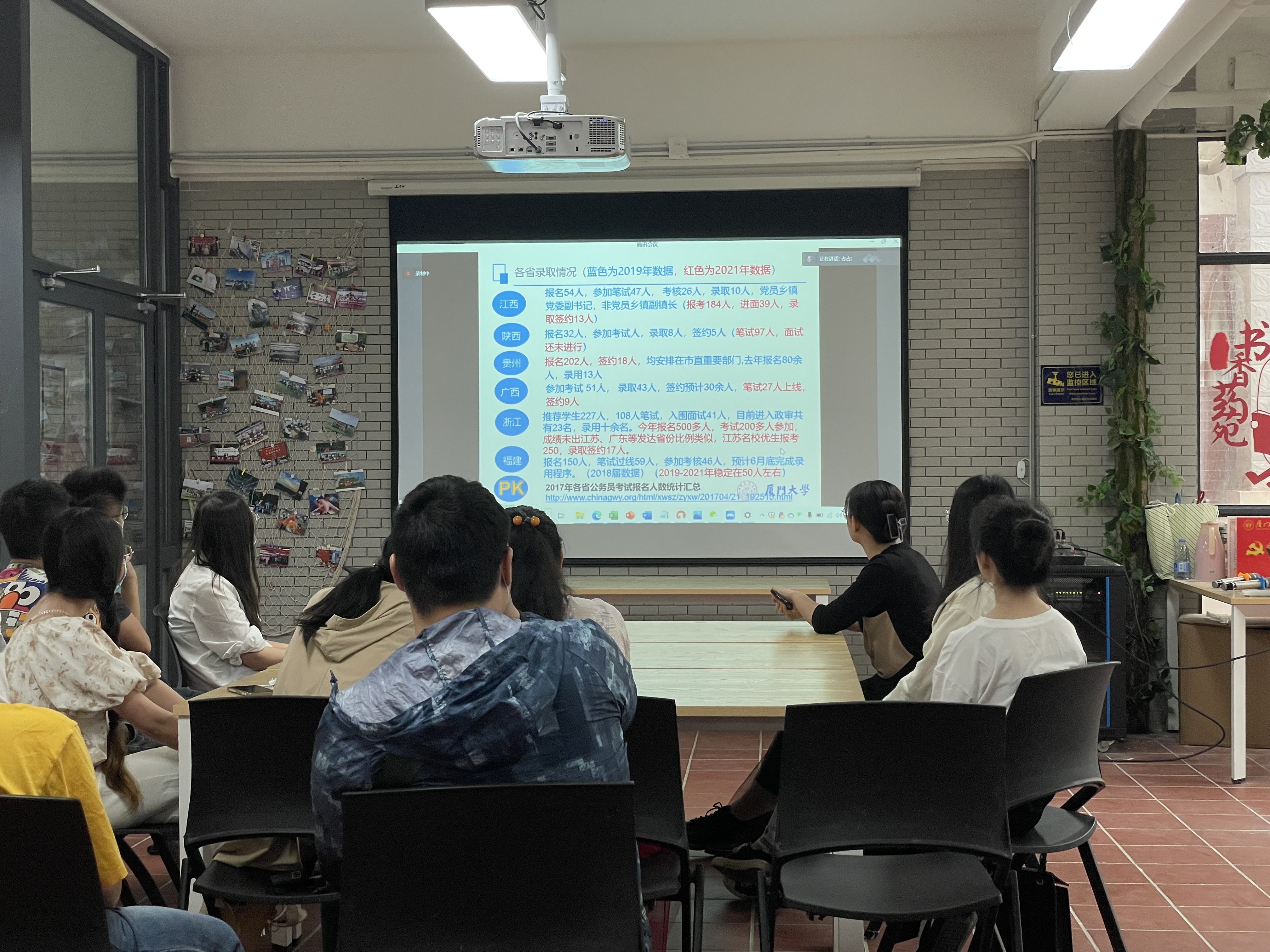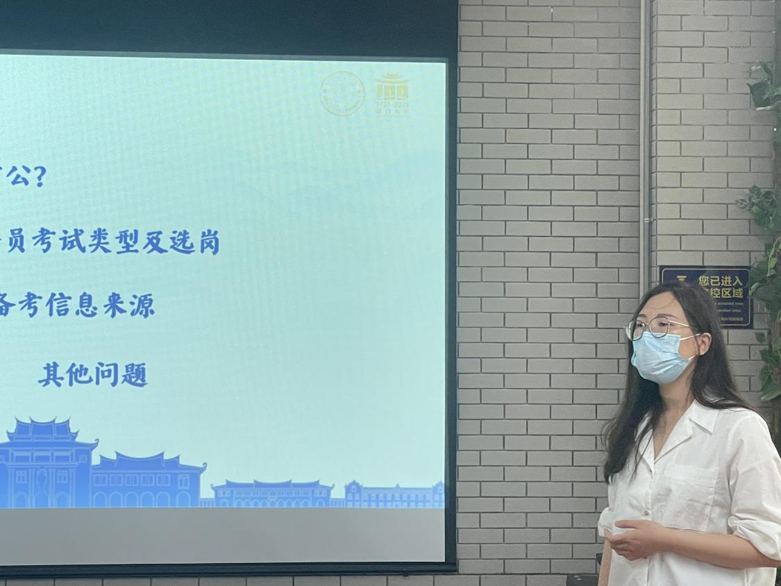 入选江苏名校优生、公共政策研究院2019级硕士生汤茹恒从自身情况出发,和大家分享了中央选调、江苏选调和北京选调的相关信息,对选岗的注意事项、复习使用的材料和时间安排上也给出了建议和提醒;入选重庆选调生、经济学院2019级硕士研究生倪莎莎分析了全国各个省份选调生的考情,并分享了自己在西部部分地区以及广东省选调生考试的备考经验,包括考试内容和不同的考试要求,为大家提供了备考策略方面的建议:一定要把握“大方向”、选择自己合适的岗位;入选云南选调生、药学院2019级硕士研究生苏再吉主要针对云南、四川选调的笔试要求、相关政策进行解读,并结合自己的考试历程分享了很多备考时的注意事项;入选广西选调生、药学院2018级本科生黄怡晴则详细介绍了选调生考试的流程以及自己作为一个本科生的备考经历,包括笔试的重难点、详细策略、面试技巧等,提醒大家一定要安排好笔试的做题顺序和不同题目的分配时间,及早备考,并祝愿大家都能取得好成绩。