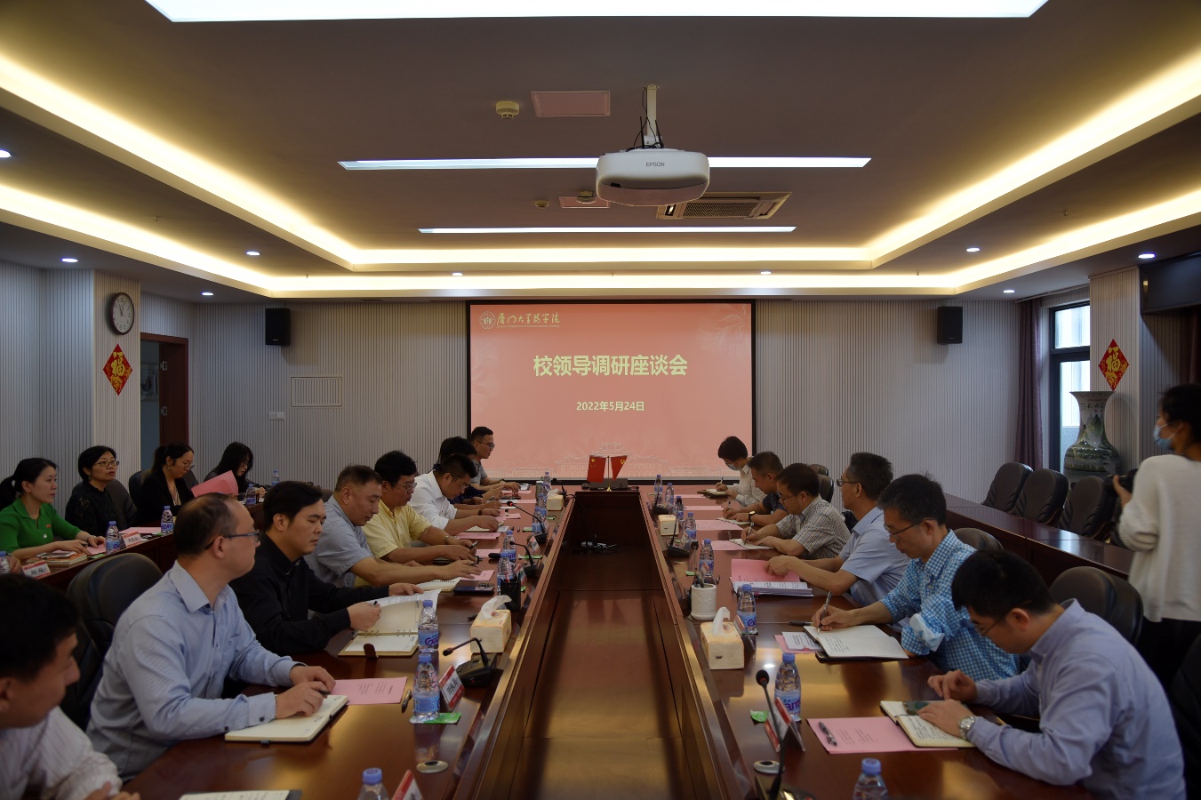 5月24日上午,厦门大学校长张宗益、副校长周大旺一行来我院调研,听取学院工作汇报,并同学院党政领导班子成员和部分学科带头人、教师代表座谈交流。学院党委书记陈怀锋主持调研座谈会。