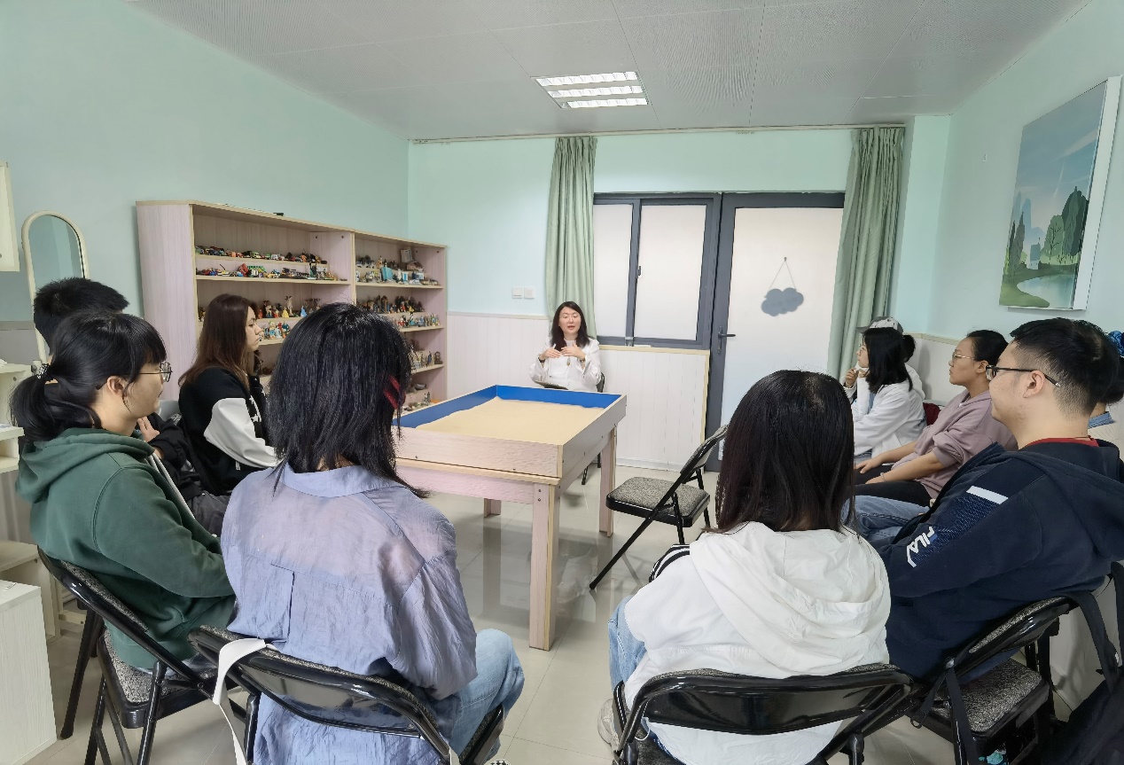 “沙盘,是公认的连接意识和无意识的工具,而平时真正影响我们行为的,更多是无意识层面而非意识层面,沙盘游戏为我们提供了探索内心世界的途径”,徐爽介绍了心理沙盘的重要意义,吸引了同学们的浓厚兴趣。接着,徐爽引导同学们进行了简单的自我介绍,询问了大家对沙盘体验活动的期待,并介绍了心理沙盘的操作规则,营造了轻松愉快的氛围。