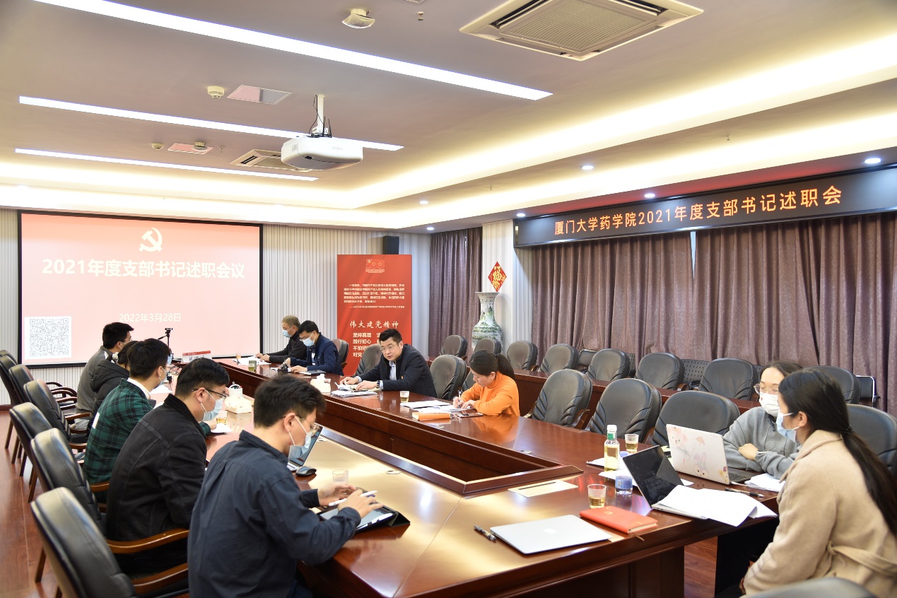 3月28日下午,药学院召开2021年度党支部书记述职会议。药学院党委委员,师生党支部书记、支委,党务秘书,全体辅导员参加会议。会议由学院党委副书记杜超主持。为了做好疫情防控,会议采用线上线下相结合的方式进行。