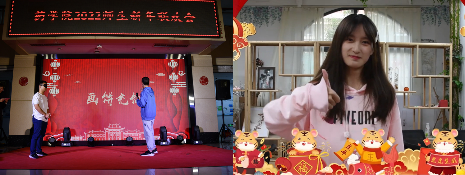 为了增加到场观众的互动参与氛围,使联欢会更具趣味性,晚会设置了游戏环节和抽奖环节,掀起阵阵热潮。现场播放了精心制作的2021年药学院大事记和老师同学们的采访视频,回顾了2021年以来学院的大事件和成就,讲述了过去一年里的收获和对未来的期望,并向大家送上了新年祝福,一同约定迈向新的一年。