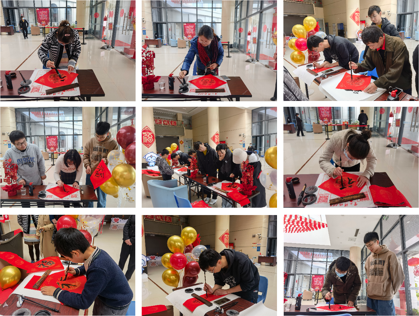 留校学生虽春节不能回家,在学校依然能够感受到浓郁的“年味”。在药学院一楼大厅,“翰墨飘香迎新春”活动吸引不少师生驻足,大家挥笔泼墨,在一张张喜庆的红纸上书写对新春的寄语与祝福。一幅幅对联、福字散发着浓浓的墨香,洋溢着喜庆祥和的新春氛围。