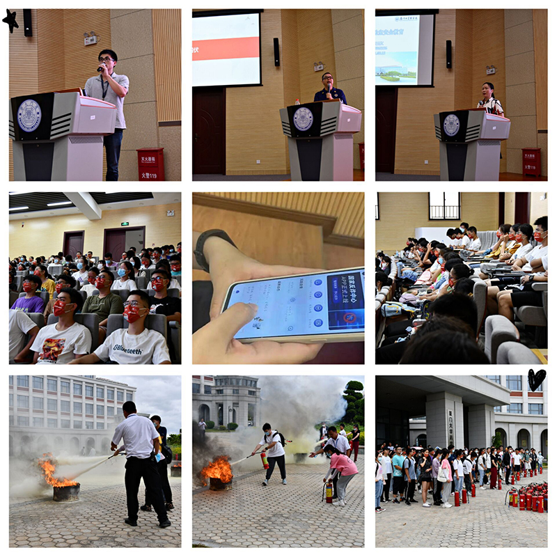 古话常说居安思危,保护好人身安全和财产安全更是顺利开始大学生活的题中之义。9月12日上午,全体新生在学武楼B101接受安全专题教育。药学院实验秘书陈玉红和翔安校区保卫办詹天钦结合各类触目惊心的事故案例,提醒同学们遵守规章制度,注意实验室安全和人身财产安全。省应急管理讲师、厦门市消防救援支队、思明区消防救援大队培训讲师林乐坦通过生动的案例及专业的知识,介绍了火灾安全知识、火场逃生技能、快速扑灭初期火灾、灭火器及消防栓的正常使用方法等。在学习了初步的理论基础后,全体新生还进行了灭火实操训练,通过实践进一步掌握消防知识。