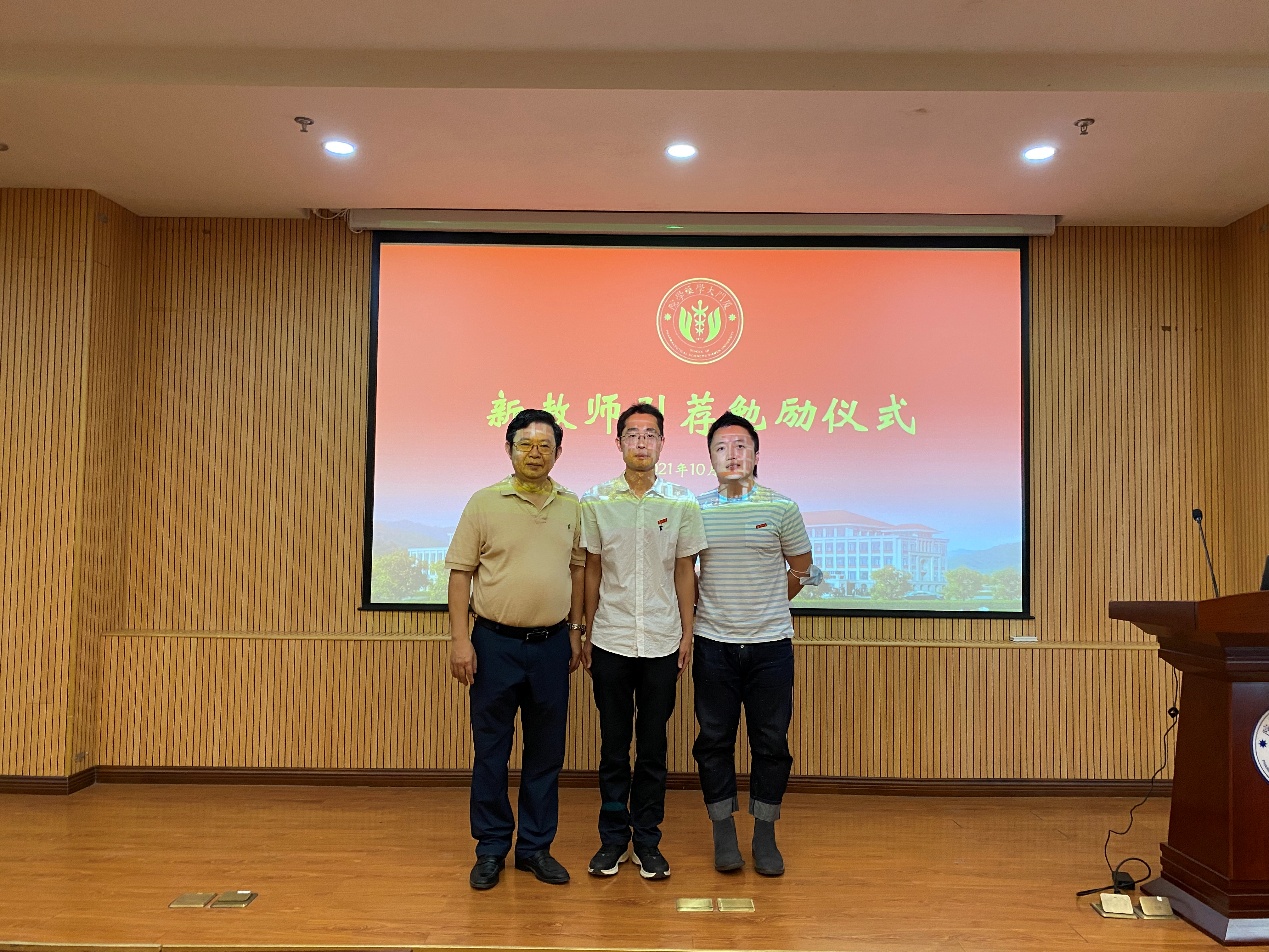 为提升新进教师的使命感、荣誉感、责任感,10月29日,在《生物化学实验(药学)》课前,药学院在庄瑾楼426报告厅为陈思明、柯毅宏两位新进教师举行“第一堂课”引荐勉励仪式,药学院副院长吴振教授主持仪式,药学院院长张晓坤教授出席。