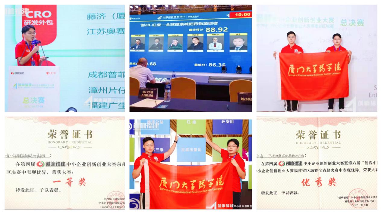 由药学院张晓坤教授和周虎教授指导的参赛项目——《红瘦——全球健康减肥靶向药物“源”创者》在比赛中脱颖而出,最终荣获泉州赛区一等奖(第一名)和福建省优秀奖(第九名)的好成绩。