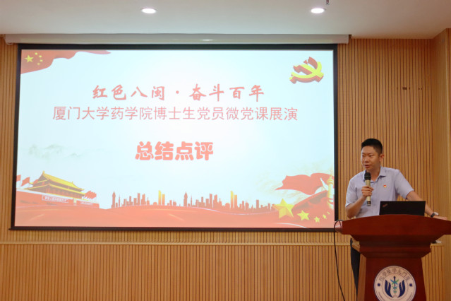 “作为未来国家医药科技领域的高端人才,博士生科研工作任务繁重,通过微党课的形式让博士生党员们登台讲授党史,可以让他们时刻牢记自己的党员身份和党员的担当使命。希望他们可以进一步学习党史、锤炼授课技能,并通过多种形式影响周边的同学,并为低年级的研究生以及本科生做出示范。”药学院党委委员、博士生导师陈海峰在参加“红色八闽·奋斗百年”微党课展演后表示。