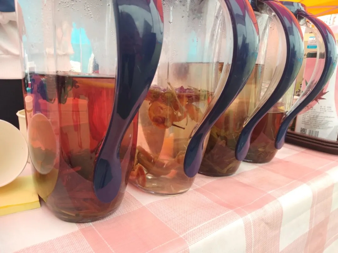 一杯降温凉茶:即使已经九月,厦门的天气依旧热情如火,药学院注册点却传来阵阵茶香。学院结合专业特色、利用师生共同研制的中草药材,泡制了甘草红枣茶、橄榄海蜜茶和山菊明茶等,清甜润口、防暑降温,为前来报到的新生送上一抹夏日凉意。