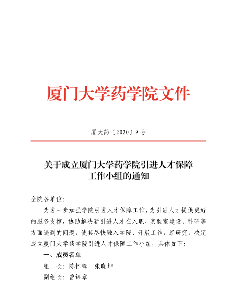 二、严格筛选,德才并重。由院党委书记、院长和分管副院长牵头,召集学院现有高层次人才成立引才工作小组,对意向加入厦大药学院的青年才俊进行思想政治素质和学术把关,考察学术经历、学术水平、与学院学科发展契合程度等,筛选后的意向名单最终报党政联席会议审定。对学院的意向人选,由院长亲自发出论坛或讲座邀请,学院人事秘书与意向人才建立初步联系,做好前期答疑和情感维系工作。同时,在广泛接触过程中,特别注重师德师风考量,做到德才并重。