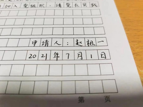 “努力让自己成长为一个对党的事业有贡献的人”,对着自己用心书写的入党申请书,赵祖一目光坚定地立下了铮铮誓言。