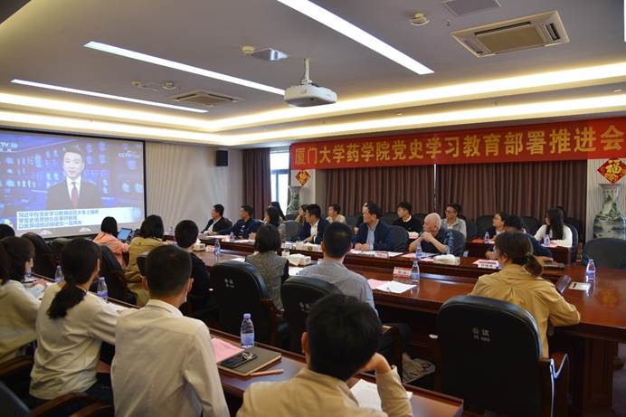 陈怀锋带领参会人员学习了习近平总书记在党史学习教育动员大会上的讲话,传达了教育部党史学习教育动员大会、厦门大学党史学习教育动员大会和推进会会议精神,并就药学院党史学习教育做动员讲话。他表示,全院各支部要认真组织学习习近平总书记在党史学习教育动员大会上的讲话精神,提高政治站位,深刻领会开展党史学习教育的重要意义。要紧紧围绕“学党史、悟思想、办实事、开新局”总体要求,做到学史明理、学史增信、学史崇德、学史力行。他强调,开展党史学习教育不仅是理论上的学习,还要体现在行动上,把学习党史同总结经验、观照现实、推动工作结合起来。各支部要按照学校和学院安排部署,精心组织策划,结合药学院师生特点、学科特点开展活动,高质量完成规定动作,开展有特色的自选动作,不断提高党史学习教育的高度、深度、广度和效度。