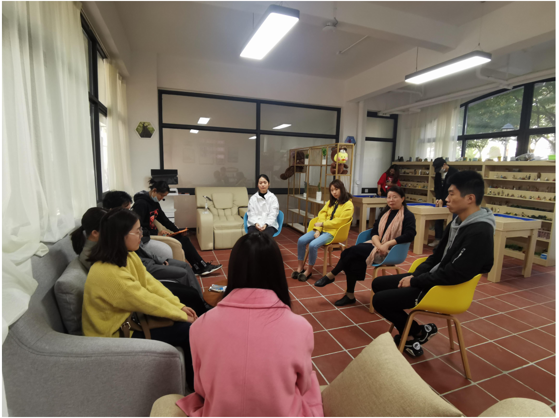 活动开始,廖彬彬引导同学们进行自我介绍,伴随着舒适轻松的室内环境,同学们在相互交流中拉近了彼此之间的距离。廖彬彬详细介绍心理沙盘操作规则:8人为一组,通过随机抽签确定每个参与者的次序,每人每轮仅能完成一次操作,过程中需维持安静的环境,由治疗师全程观察、记录。