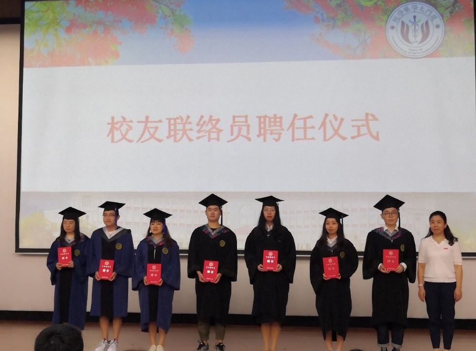 丁昌利为被聘为厦门大学2020届校友联络员的黄定坤等同学颁发“校友联络员聘书”。