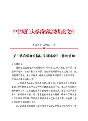 随着任课教师“现在正式上课”的声音在网络课堂内响起,药学院2020年春季学期教学工作正式拉开帷幕。