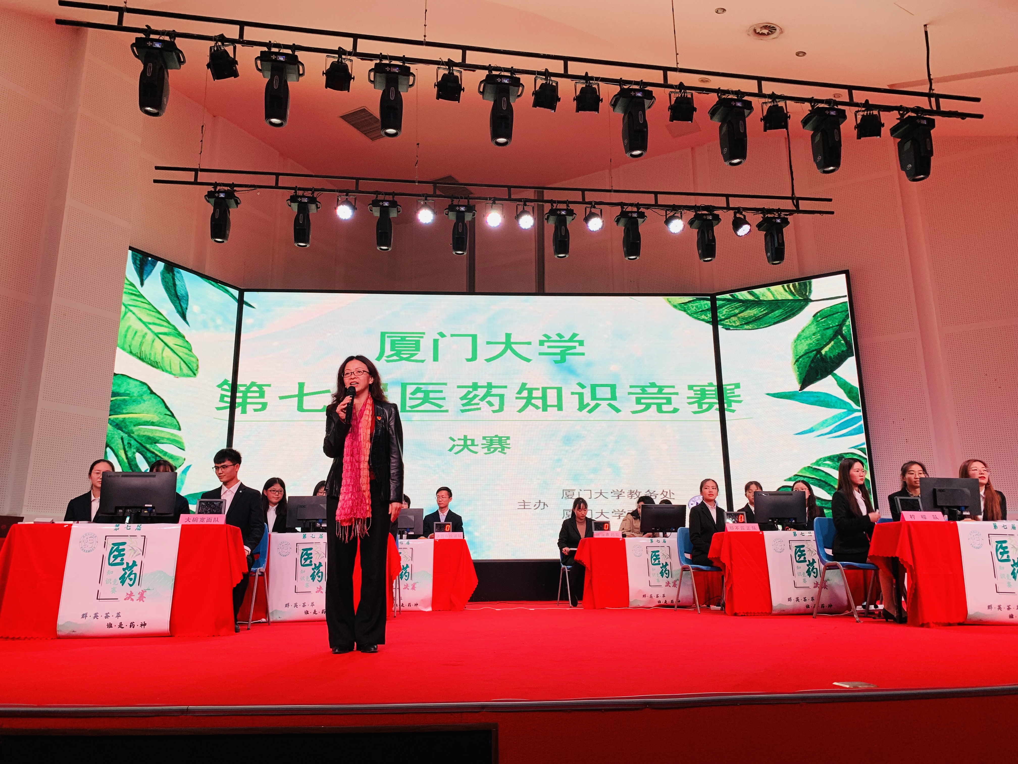 比赛开始前,黄宇霞致辞。她说,医药知识竞赛至今已举办了七届,成为了具有翔安校区特色的校园文化品牌活动,吸引了来自两个校区众多学院的学生参与,对增强翔安校区的科研创新活动、活跃校区文化氛围、提高校区影响力等具有重要意义。她勉励同学们以参加比赛为契机,努力学习、弘扬和传承中华优秀传统医药文化。她希望同学们倍加珍惜、积极参加校区提供的各类校园文化活动,把握机会,充实自己的大学生活,提升自身综合素质能力。