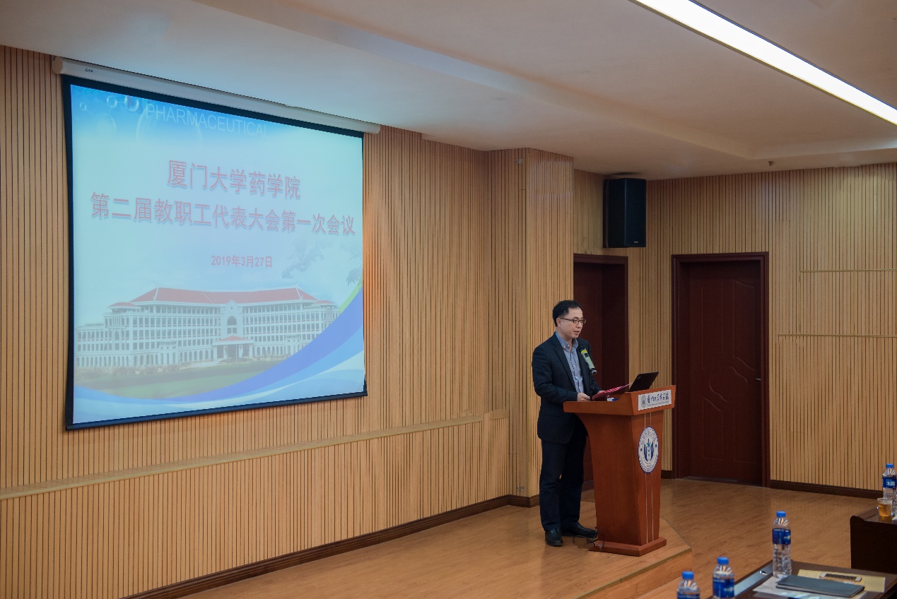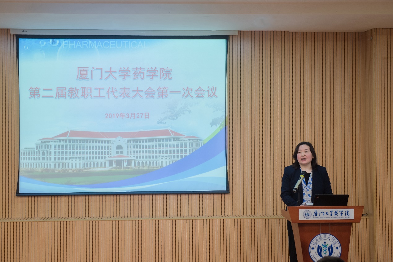 3月27日上午,药学院在426报告厅召开第二届教职工代表大会第一次会议。会议听取并审议了《药学院2018年学院工作总结和2019年学院工作计划报告》《药学院财务工作报告》。校工会副主席秦红梅,药学院党委书记陈怀锋,院长张晓坤,党委副书记陈夷、丁昌利,副院长吴振、曾锦章,工会主席朱铉以及全体教职工参加会议。会议两个阶段分别由丁昌利、朱铉主持。