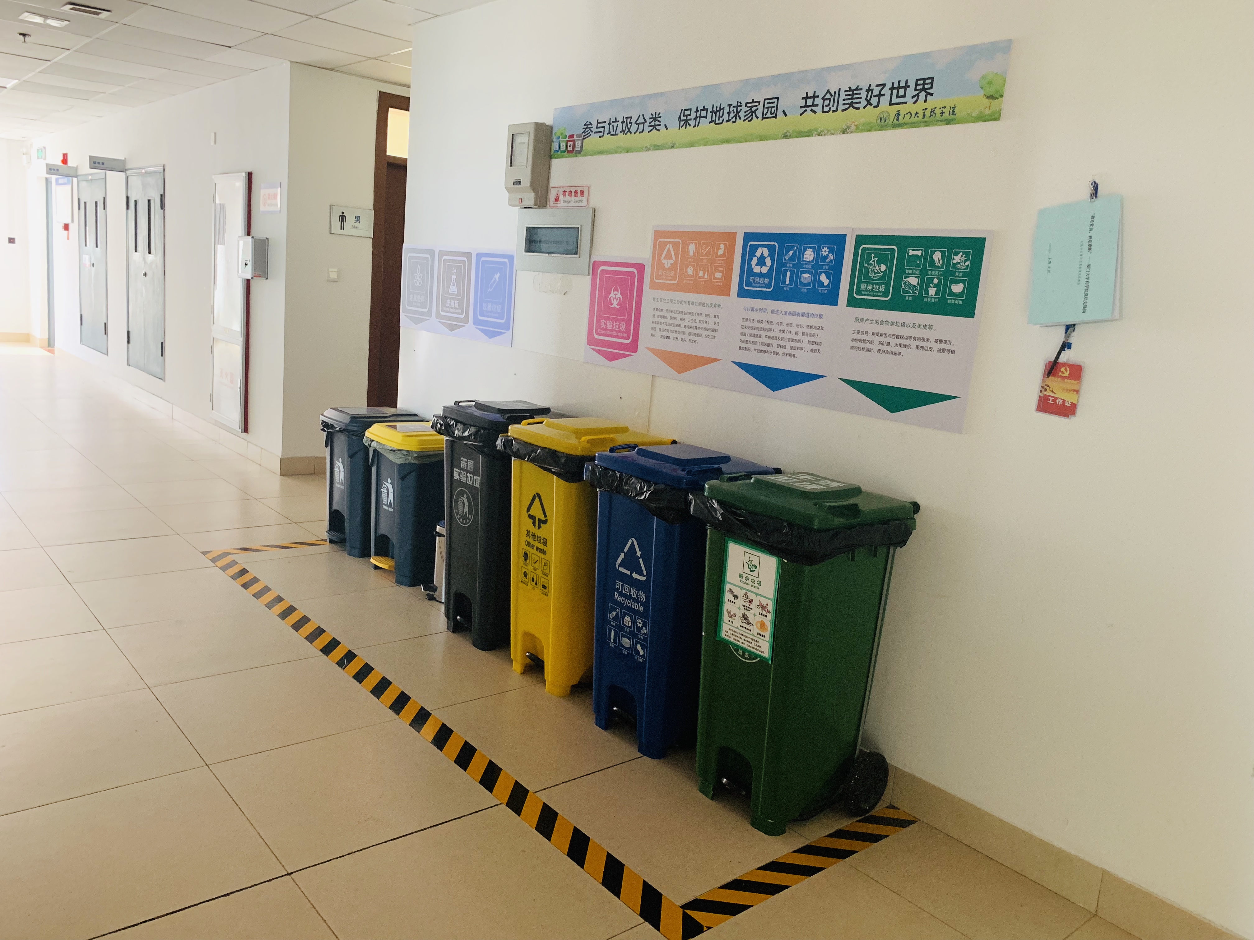 领导小组多次深入学院各重点区域进行检查,摸排学院周边和学生宿舍区的垃圾回收设施情况,针对药学院的实际情况,对学院垃圾投放地点和设施进行了优化设计,购买新型垃圾桶在每楼层多个区域集中设置垃圾投放点。针对院楼实验垃圾较多的实际情况,在实验室区域专门配备“实验垃圾”“锐器垃圾”“废液瓶”等类型垃圾桶。为各类垃圾安置好独属于这类垃圾的“家”。