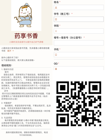 为了将快捷方便的数字化阅读与传统纸质图书有机结合,药学院构建了线上图书借阅平台——“药享书香”掌上图书馆。