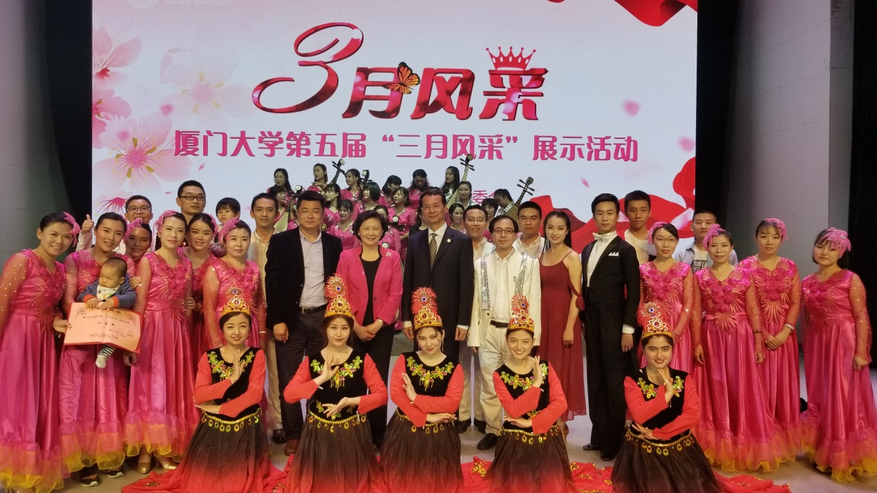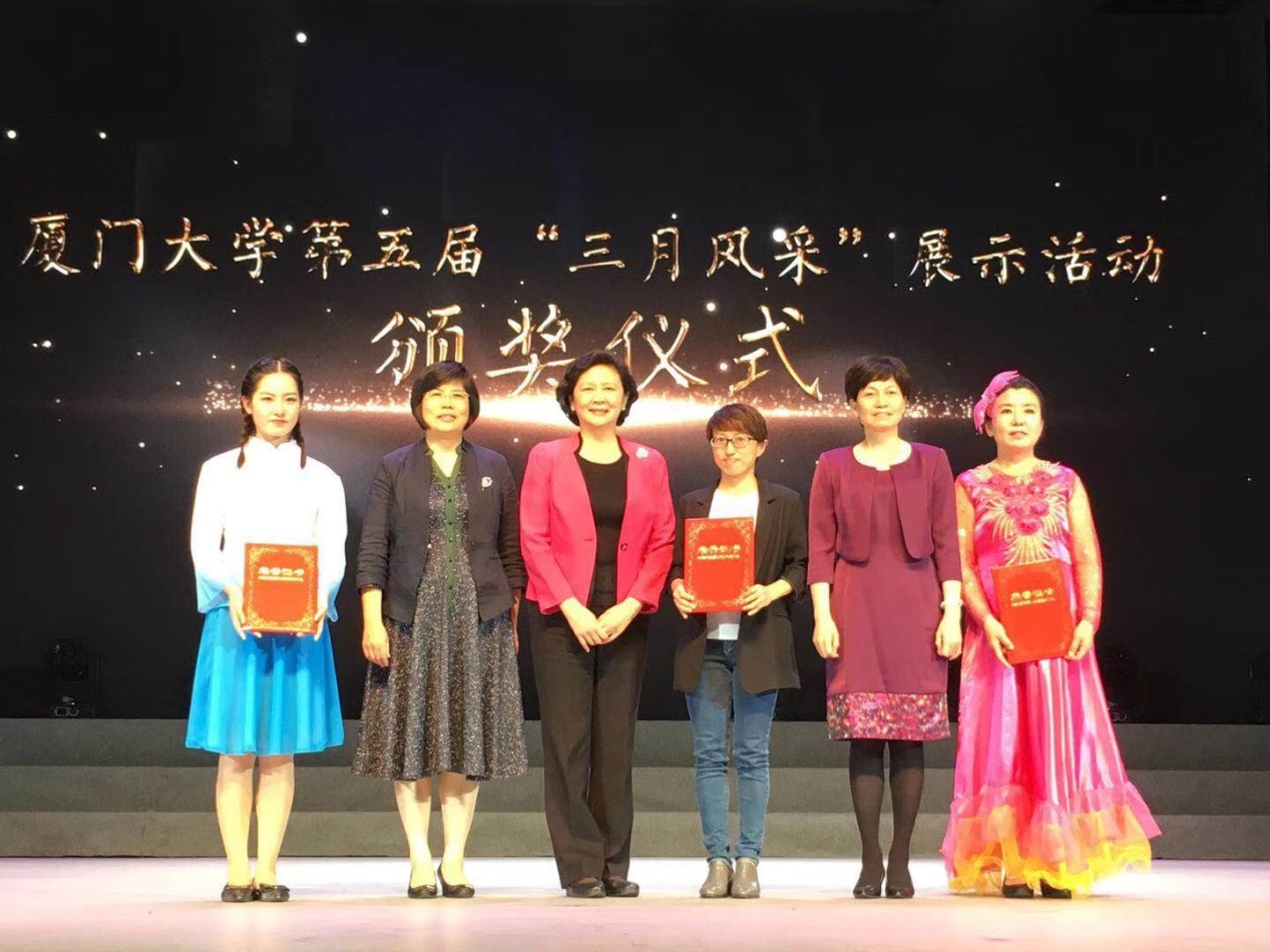 4月20日晚,由校工会、校妇委会联合主办的第五届教职工“三月风采”展示活动在建南大会堂隆重举行。药学院代表队展示了一曲精彩的歌舞、器乐表演《花儿为什么这么红》,获得全场排名第二的才艺表演分,再加上之前评定的工作风采视频分,以总分第三的排名,最终斩获二等奖。