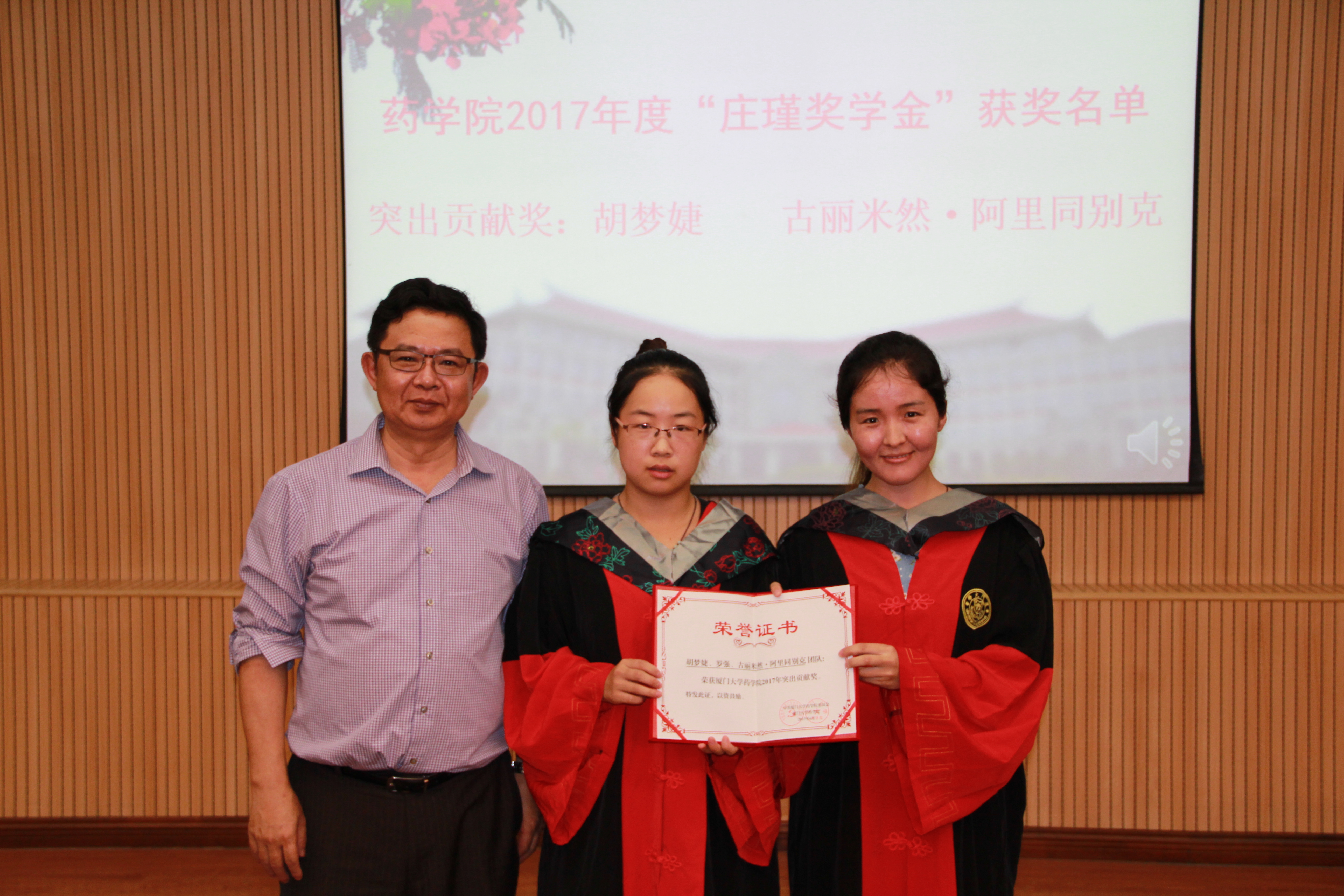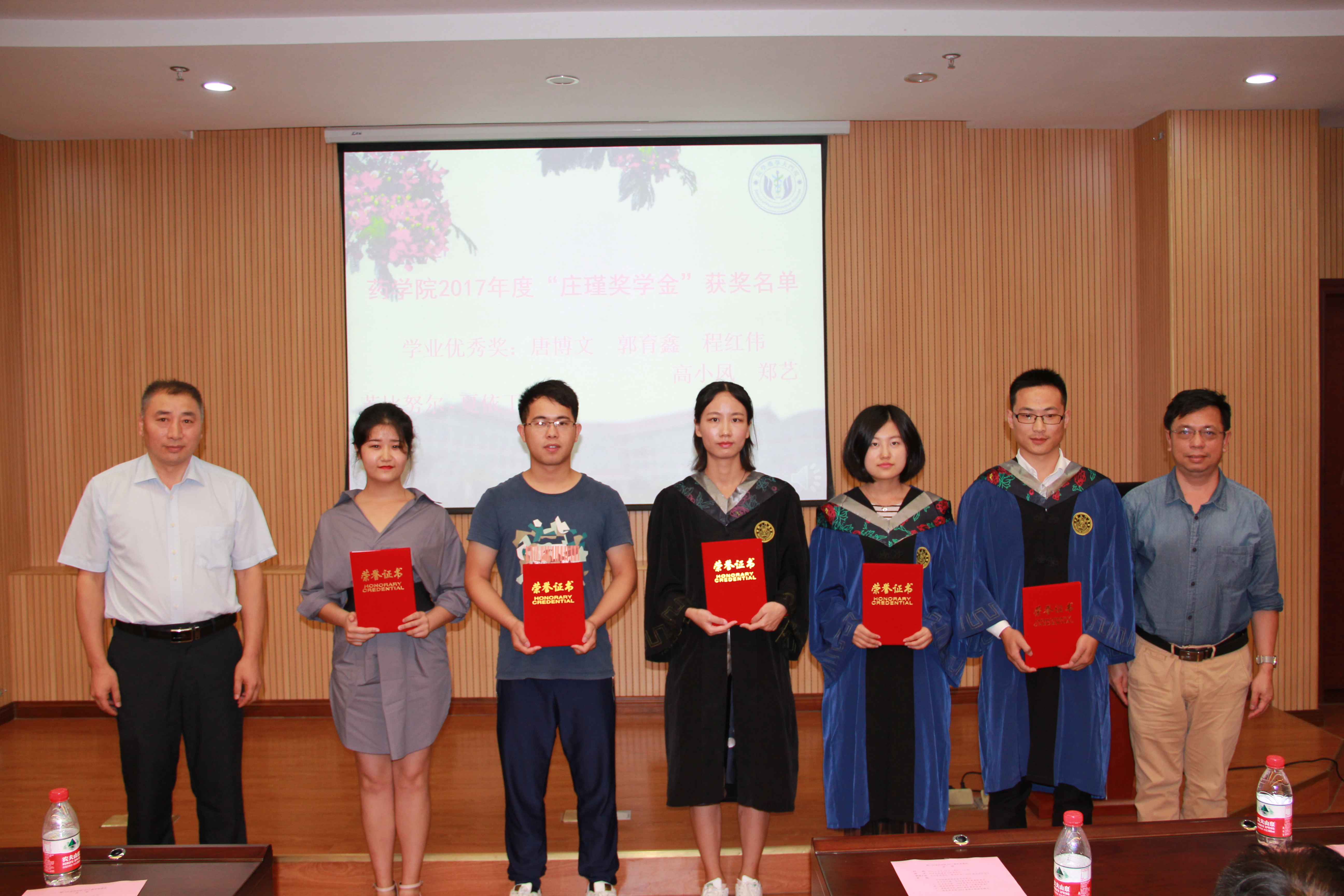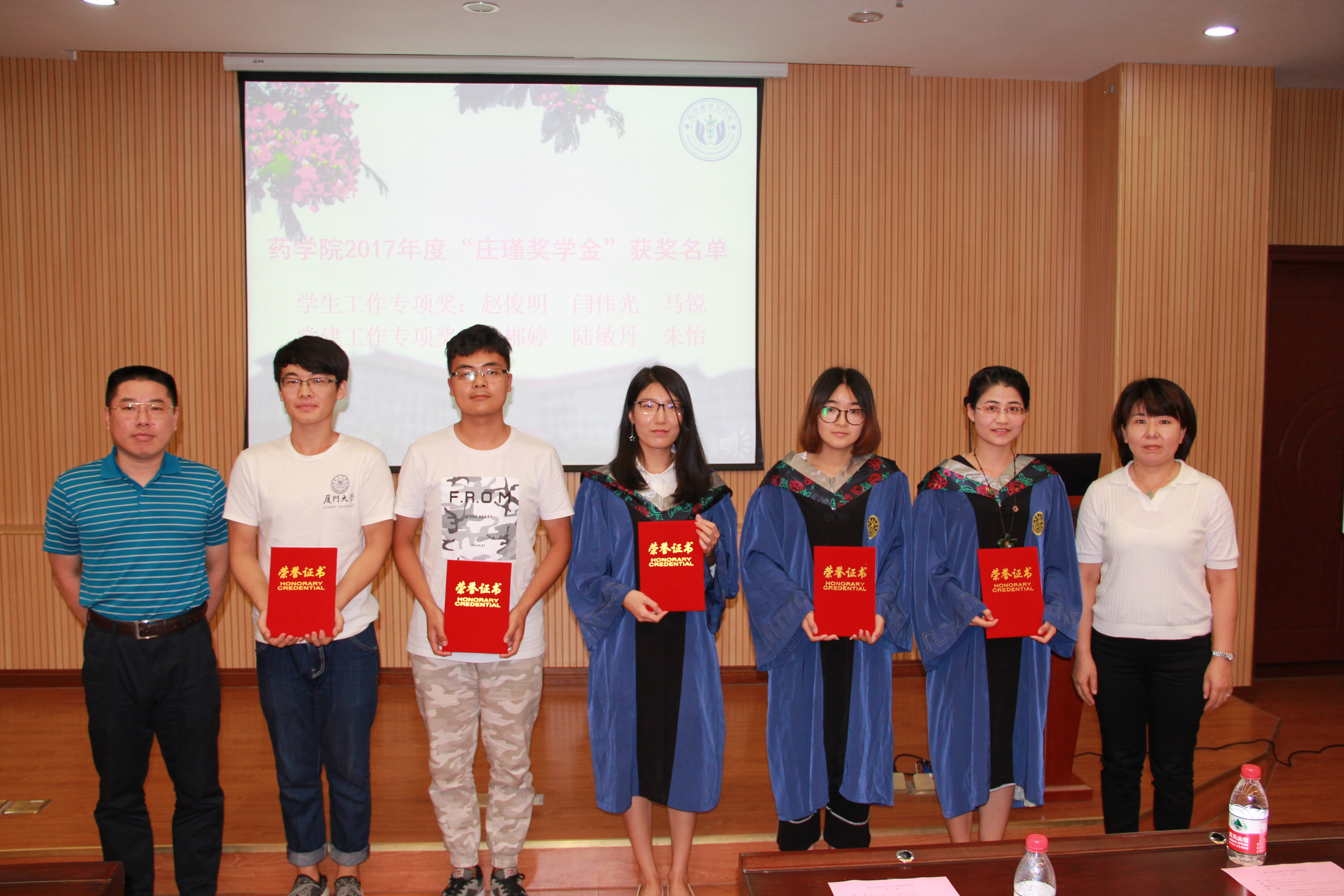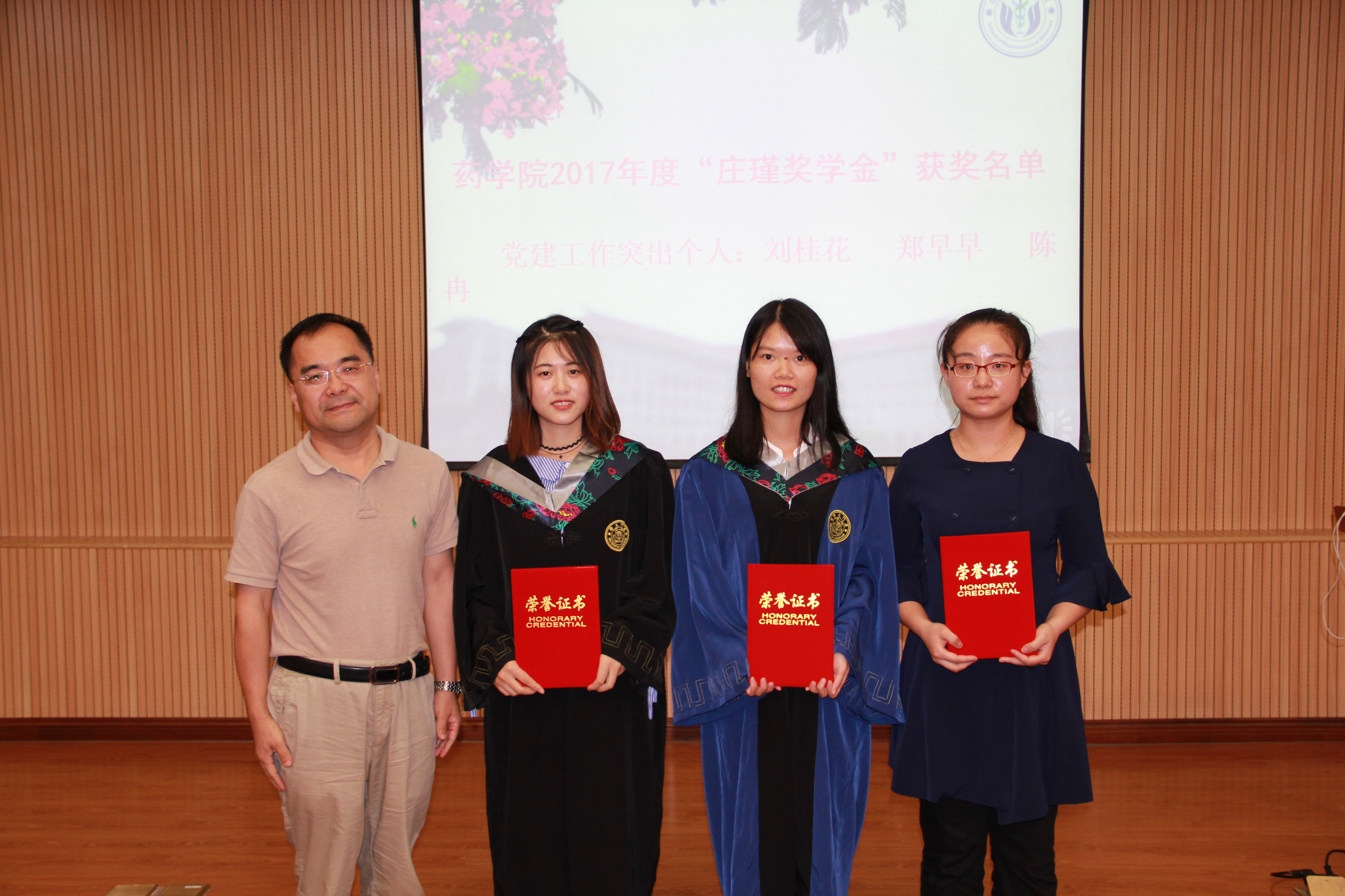 随后举行了药学院2017年度“庄瑾奖学金”颁奖仪式。“庄瑾奖学金”用于表彰在学习科研、学生工作和党建工作等方面取得突出成绩的学生。学院院长助理陈海峰老师宣读表彰决定。