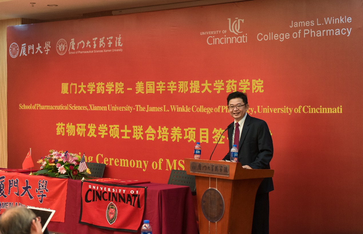 美国辛辛那提大学(University of Cincinnati)成立于1819年,位于美国俄亥俄州辛辛那提市,是美国第二古老的公立学府,在全美公立研究大学中排名前25名,在世界2500所著名研究型大学中位列前200强。医药学科是辛大的优势学科之一,其中药学学科在世界大学学科领域排名中位于第32位。两校此次合作开展的药物研发学1+1硕士留学项目(MSDD项目)已在2016年2月29日签署合作备忘录,此次以合作协议的形式进一步规范和细化了项目执行内容。项目详情请见网页http://msdd.xmu.edu.cn/