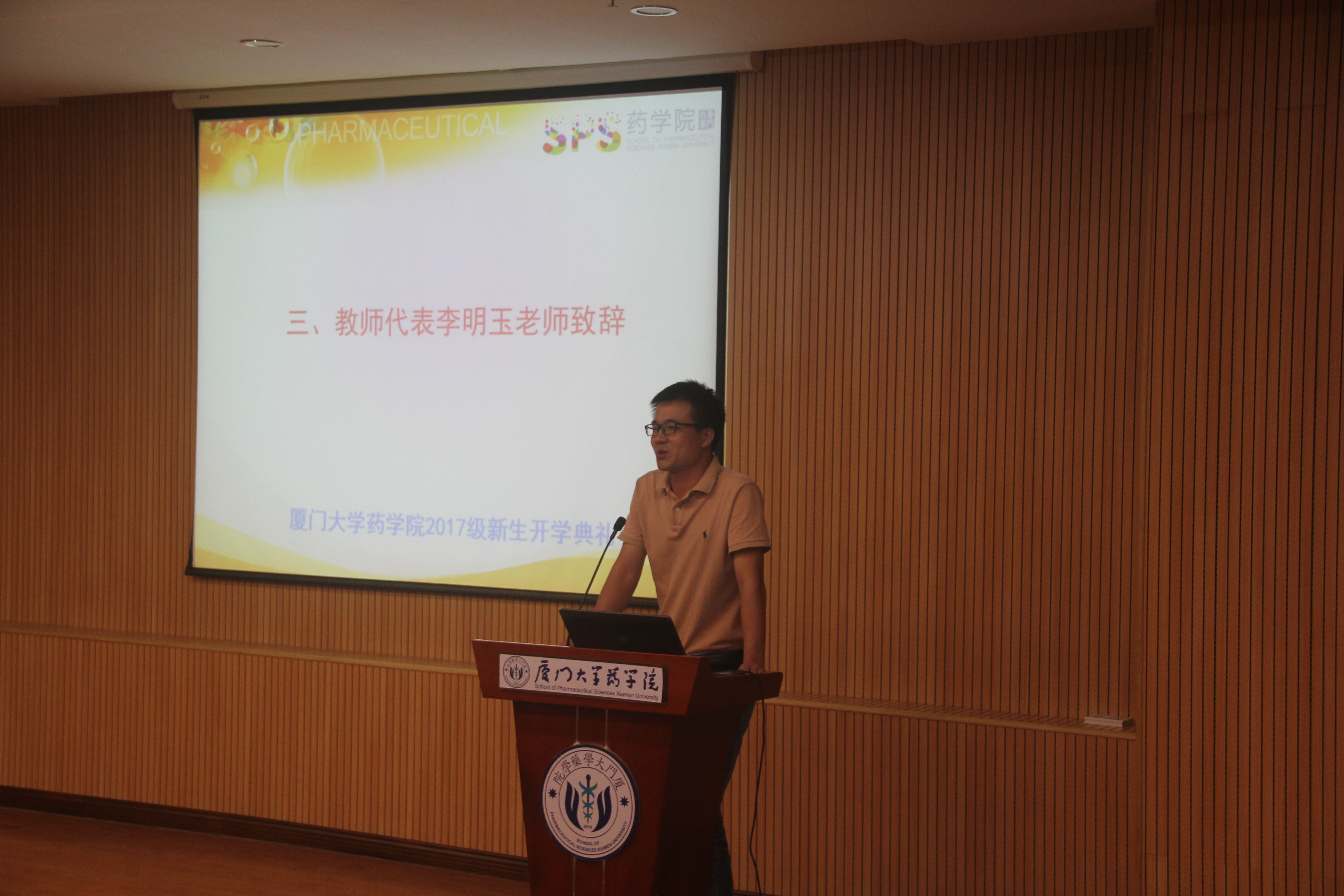 李明玉代表学院教师发言。他勉励同学们,要树立目标敢于挑战,从进校开始树立远大理想,抓住机遇锻炼自己;要坚持学习敢于创新,积极开展自主学习,通过阅读文献和参与科研,在学术上积极创新;要学会适应新环境解决新问题,积极调整心态,学会独立,主动融入新的学习生活环境。