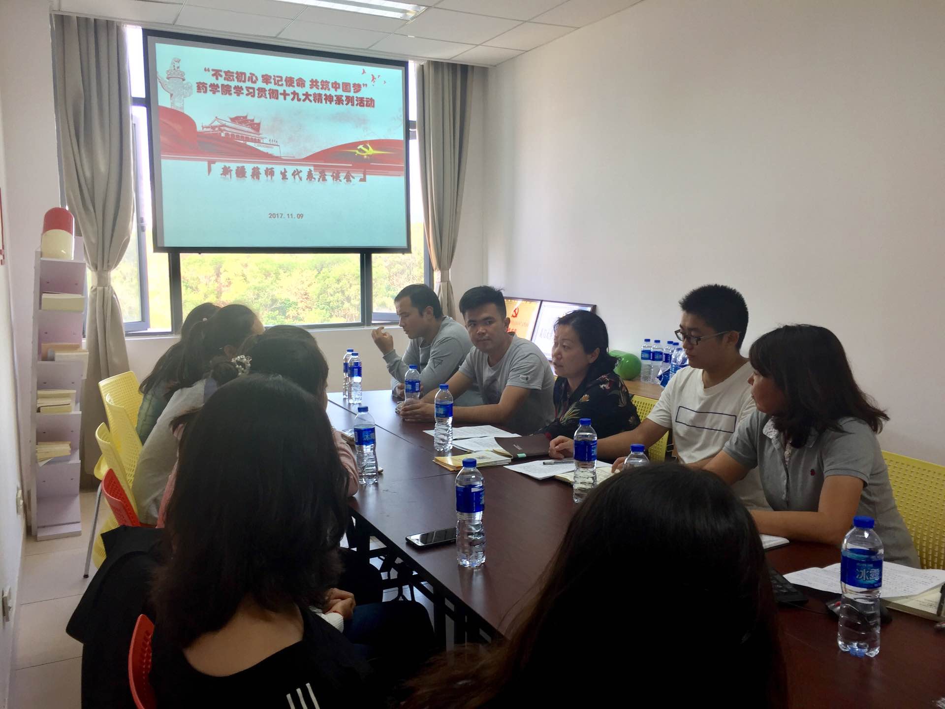 11月9日中午,药学院“不忘初心牢记使命共筑中国梦”学习贯彻党的十九大精神系列活动——新疆籍师生代表座谈会在药学院“党员之家”举行。新疆内派教师蒋兴红、何聪,药学院党委副书记丁昌利、院团委书记陈国全以及2017级新疆籍新生、往届老生代表参加了座谈会。会议由院团委副书记范荣主持。