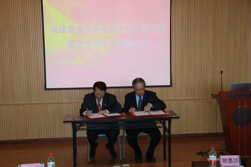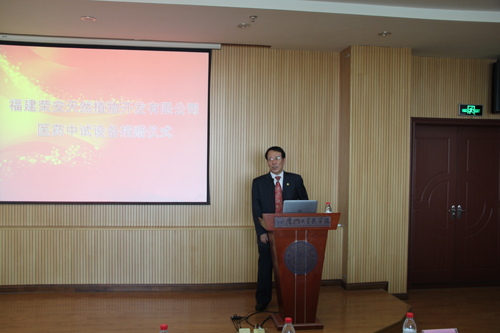郭昆荣先生是马来西亚华侨,国际知名连锁企业香格里拉酒店集团的股东之一,祖籍福州。郭先生始终关注、牵挂着故乡医药卫生事业的发展,在福州创办了福建荣安天然植物开发有限公司,并在今天毅然捐出公司的这套高价值医药中试设备。该套设备包含了中药成分提取分离、口服固体制剂生产、保健品食品生产等用途,将用于支持我院的教学科研发展和科研成果产业化。学校拟在此基础上,于厦门市海沧生物医药园区,建设“药学实践中试基地”,为药学专业本科生和研究生的教学提供重要的实践场所,并在未来努力建设成市级乃至国家级的教学科研实践平台,在科技创新和高层次药学人才培养等方面做出更大的贡献。