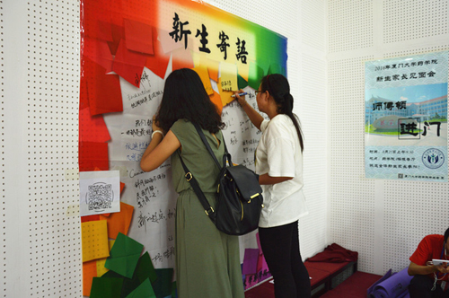 8月24日七点,药学院迎新点迎来了第一位报到的新生,新生在志愿者的引导下办理注册手续,并领取一卡通、入学教育等材料,随后即可前往宿舍入住,一站式的服务简化了新生入学的程序。我院为每一位新生家长准备了一封信,信上详细介绍了新生在校期间的注意事项,并列出学院相关部门及老师的联系方式,提醒家长加强对学生的关注,重视与学校的沟通。由新生家长全员参与的“药学院2016级本科生家长微信群”受到家长们的广泛欢迎,及时将学生在校情况进行分享,使得家长们在及时了解学生动态的同时,能够更好地配合学校做好对学生教育和培养。